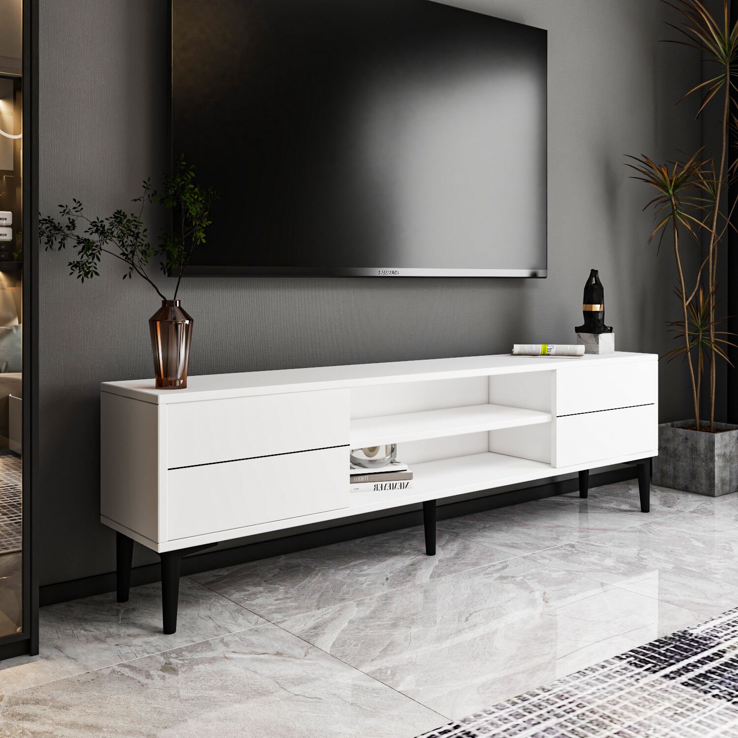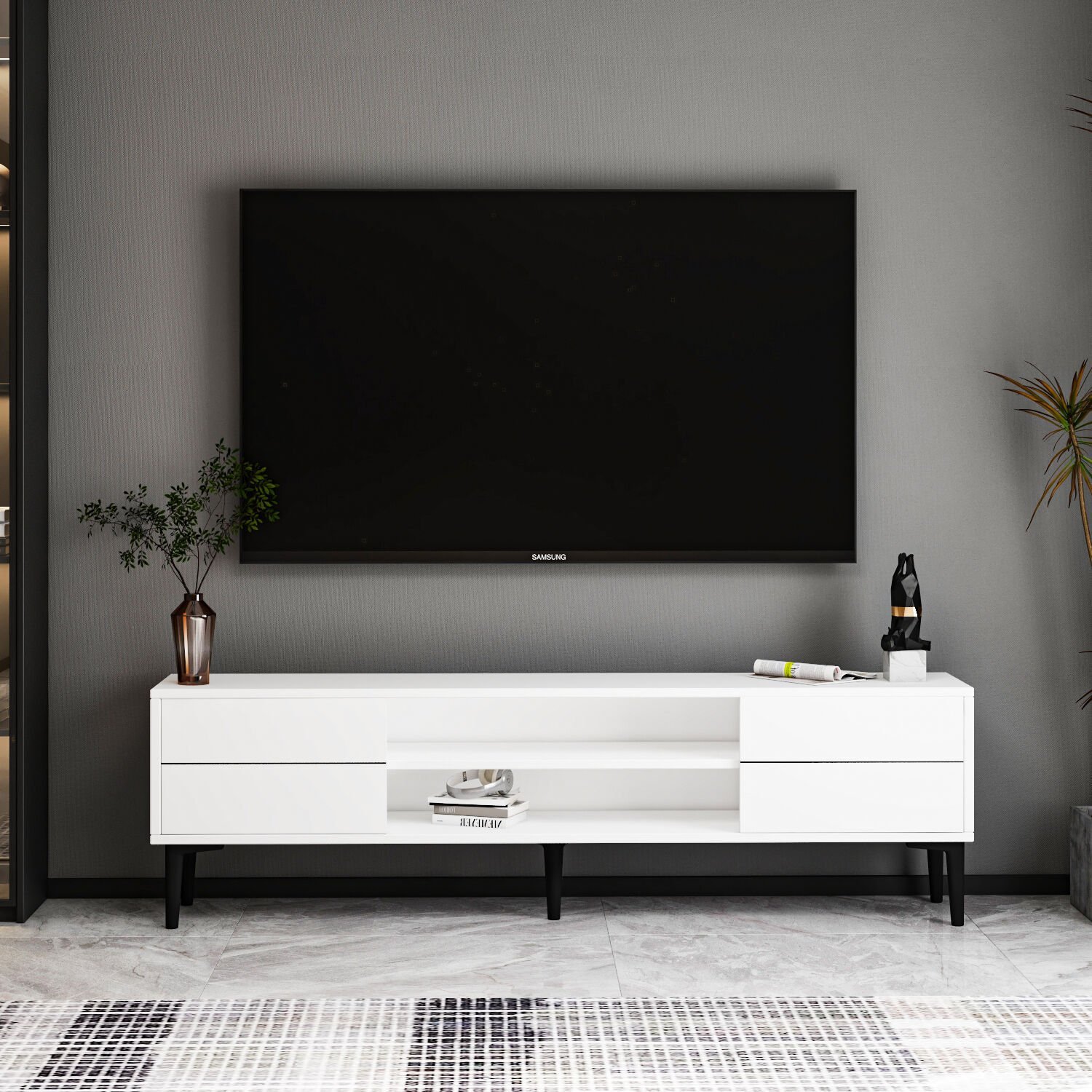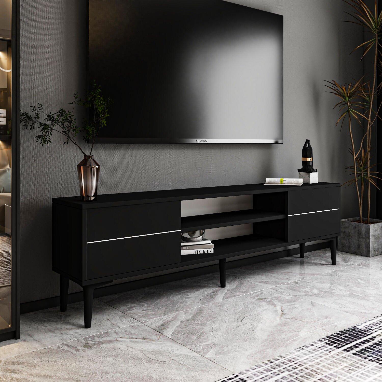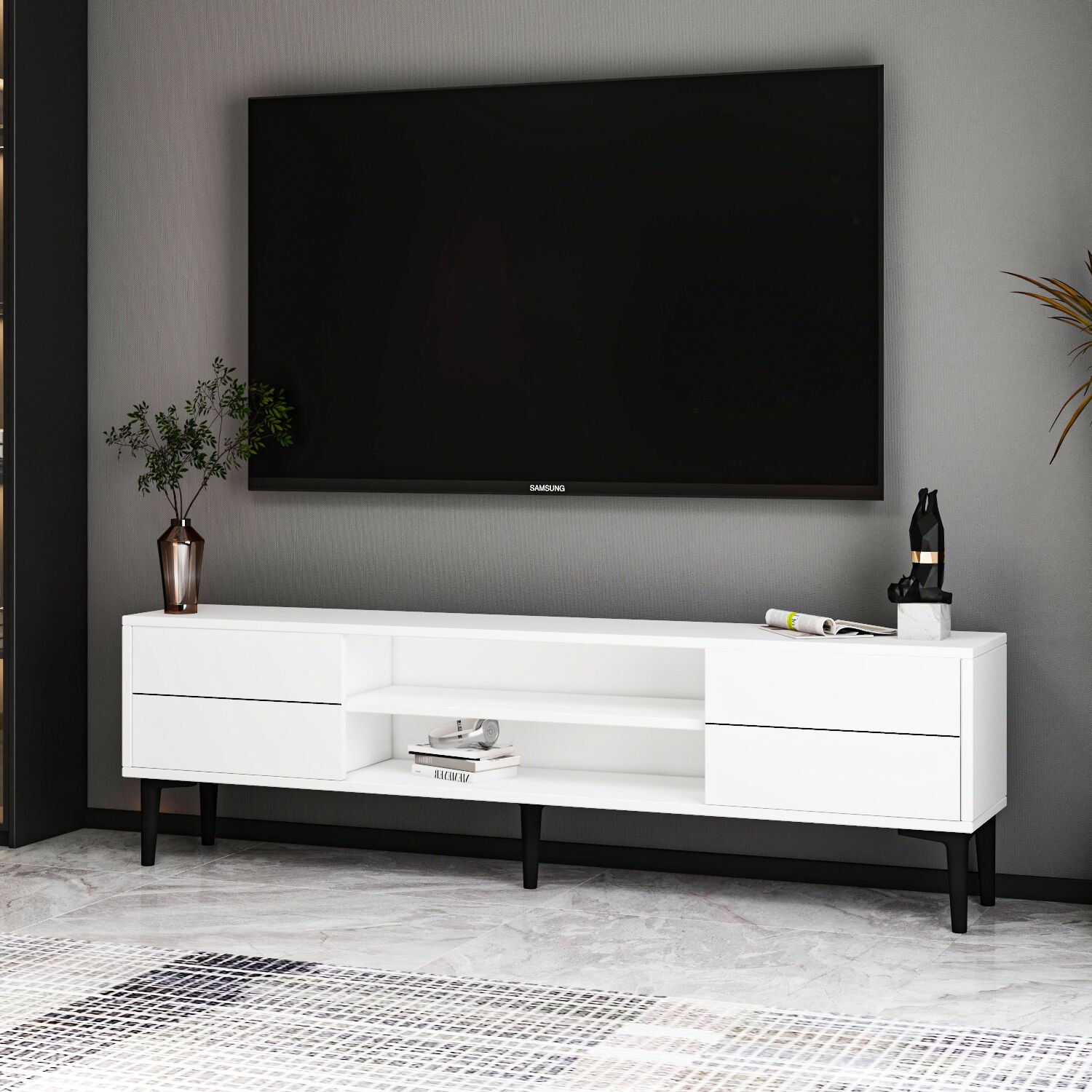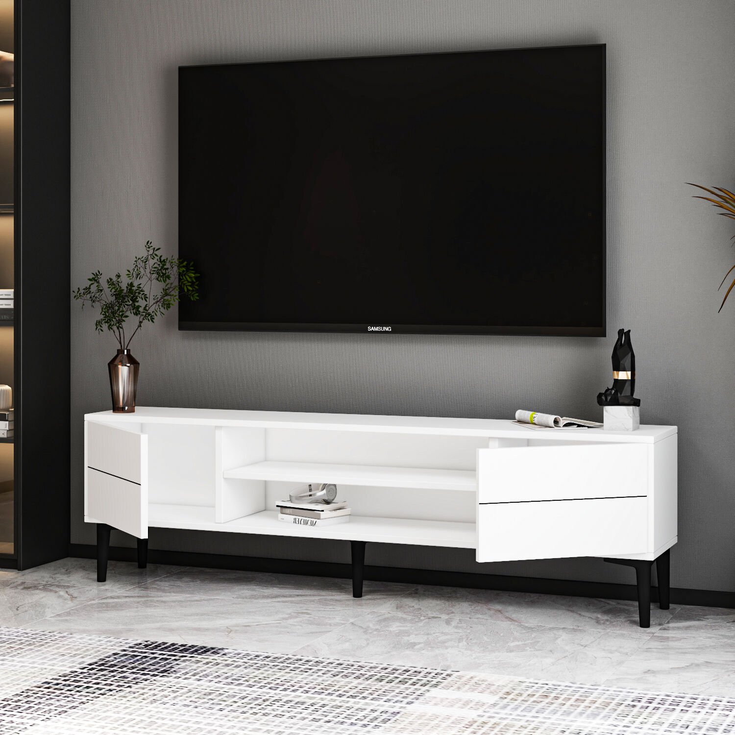 Şık tasarımı ve geniş kullanım alanı ile dikkat çeken bu modern TV sehpası, Siyah ve beyaz renk alternatifleriyle her dekorasyona kolayca uyum sağlar.