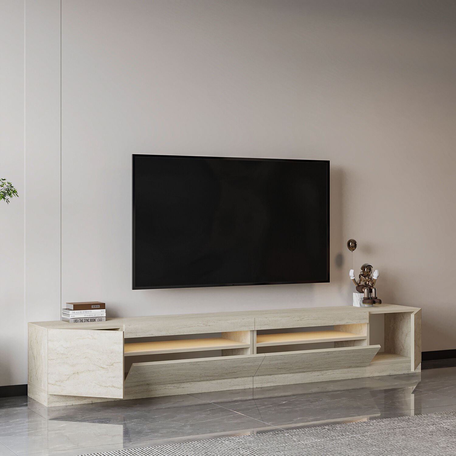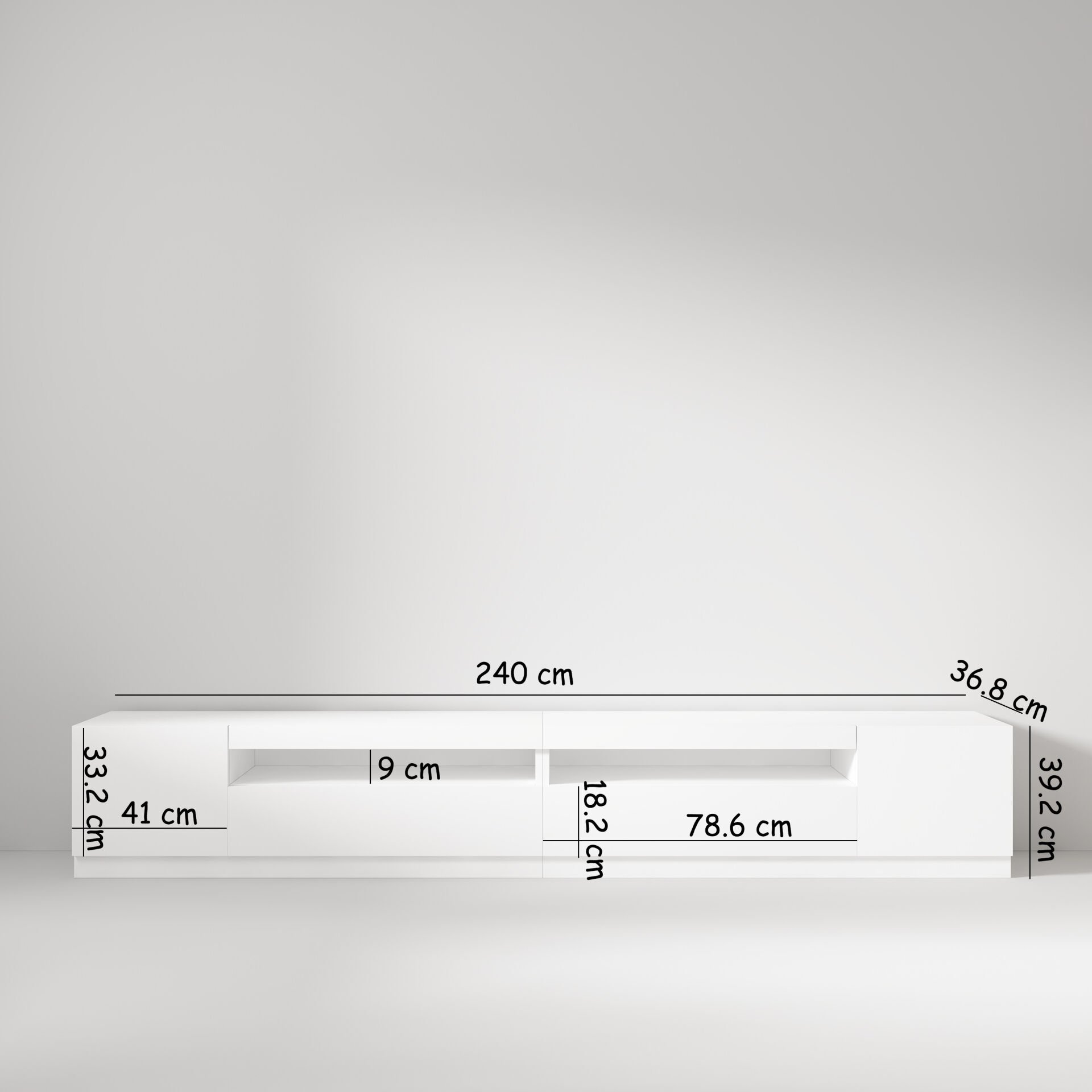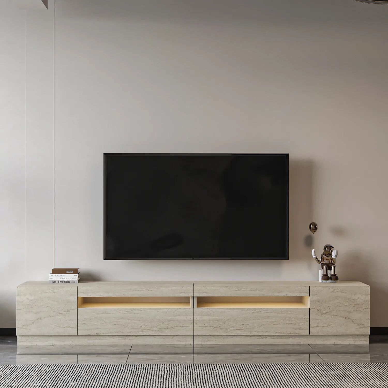 Arya T008 LED Işıklı TV Sehpası Seti, modern ve minimalist tasarımıyla oturma odanıza şıklık katar. 4 kapaklı geniş depolama alanı ve LED aydınlatması ile hem estetik hem de işlevsel bir çözüm sunar. Dayanıklı malzeme yapısı sayesinde uzun ömürlü kullanım sağlar. Farklı dekorasyon stillerine uyum sağlayabilmesi için Orma Mermer/Beyaz, Beyaz, Ahşap Siyah ve Traverten olmak üzere 4 renk seçeneği bulunur.