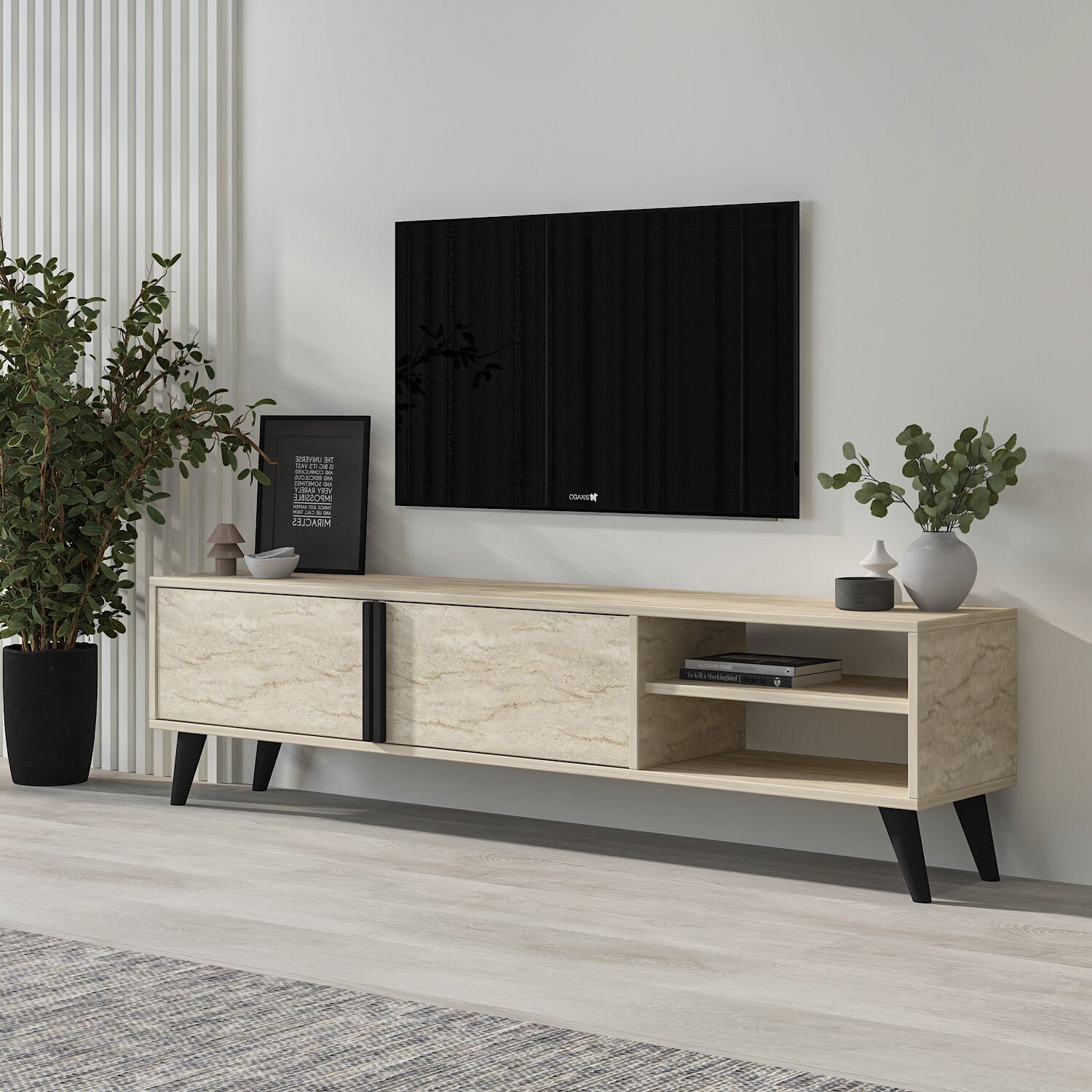 Modern tasarımı ve şık detaylarıyla öne çıkan Benoit TV Sehpası, ev dekorasyonunuza zarif bir dokunuş katıyor. 2 kapaklı geniş saklama alanı ve açık raf bölmeleri sayesinde hem elektronik cihazlarınızı hem de dekoratif eşyalarınızı düzenli şekilde sergileyebilirsiniz. Sağlam yapısı ve estetik görünümüyle uzun yıllar kullanıma uygundur.