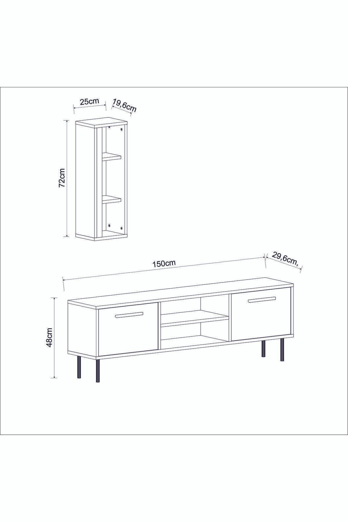 TV Ünitesi: 150 cm (Genişlik) × 48 cm (Yükseklik) × 29,6 cm (Derinlik)