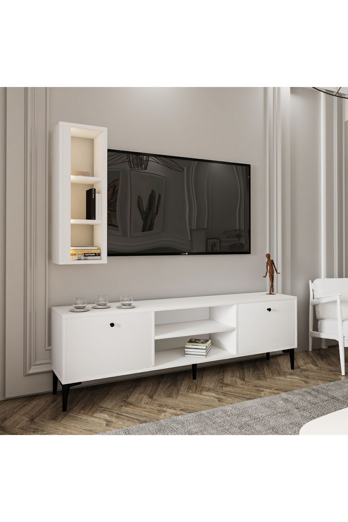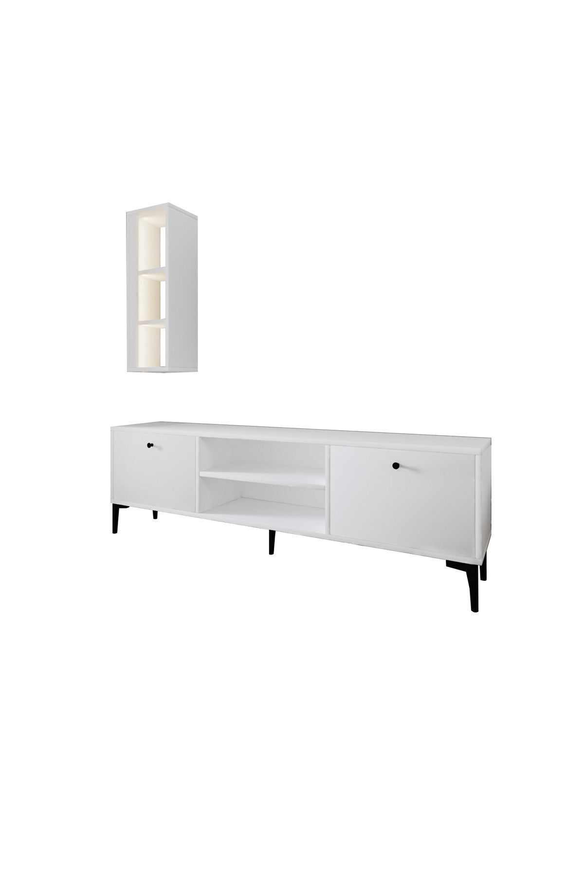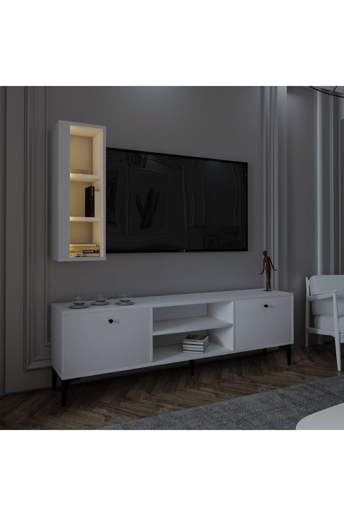 Bien Işıklı 2 Kapaklı TV Ünitesi ve Duvara Monte LED Raf seti, modern yaşam alanları için hem estetik hem de işlevsel bir çözüm sunar. Beyaz renkli tasarımıyla ferah bir görünüm sağlayan bu set, oturma odanıza şıklık katarken düzeni de beraberinde getirir.