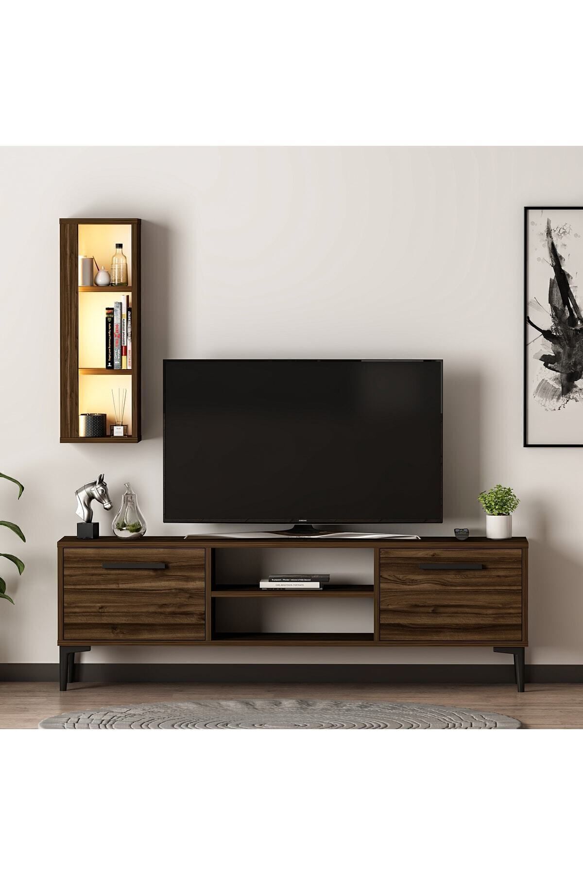 Bien Işıklı 2 Kapaklı TV Ünitesi ve Duvara Monte LED Raf seti, modern yaşam alanları için hem estetik hem de işlevsel bir çözüm sunar. Ceviz renkli tasarımıyla ferah bir görünüm sağlayan bu set, oturma odanıza şıklık katarken düzeni de beraberinde getirir.