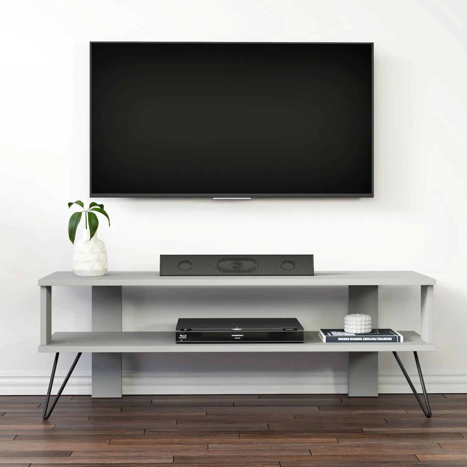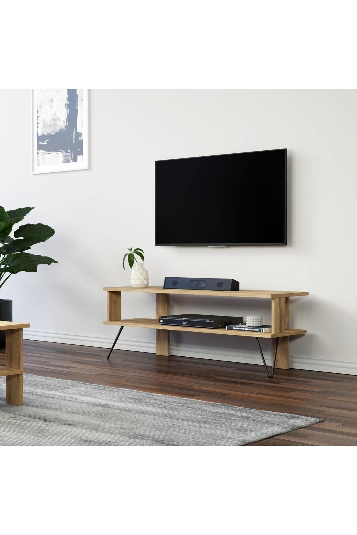 Duama TV Sehpası, kompakt yapısıyla küçük ve orta ölçekli salonlar için ideal bir çözüm sunar. Açık rafları sayesinde kablo karmaşası olmadan medya oynatıcılar, kitaplar veya dekoratif objeler kolayca yerleştirilebilir. Metal ayakları sayesinde uzun ömürlü ve sağlam bir kullanım sağlar.