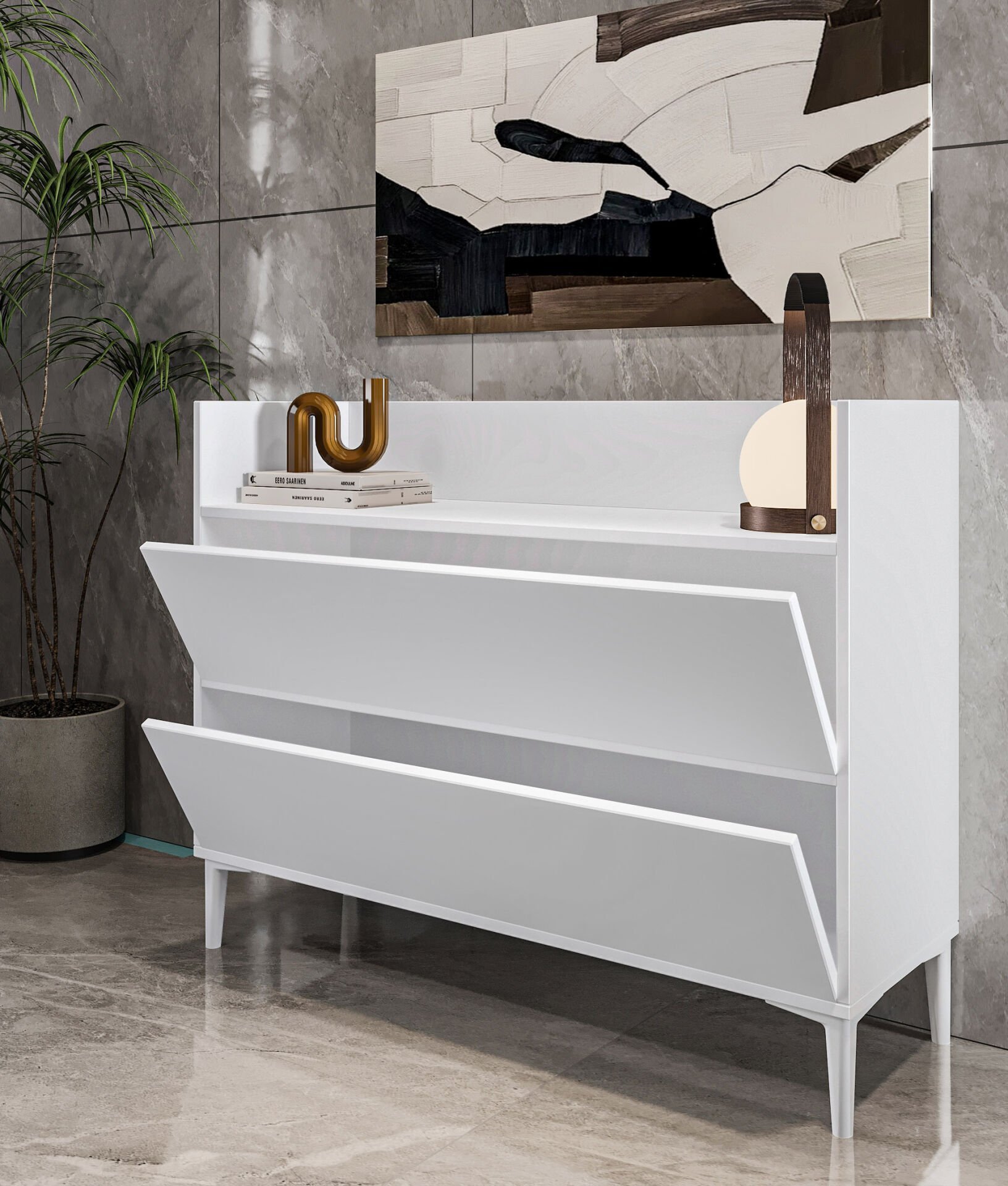 Gale Çok Amaçlı Dolap, evinizin farklı alanlarında kullanabileceğiniz fonksiyonel ve şık bir depolama çözümüdür. Dresuar, mutfak dolabı, ayakkabılık veya yardımcı dolap olarak kullanılabilir. Minimalist tasarımı ve iki adet aşağı doğru tamamen açılan kapaklı bölmesi ile hem estetik hem de pratik bir kullanım sunar.