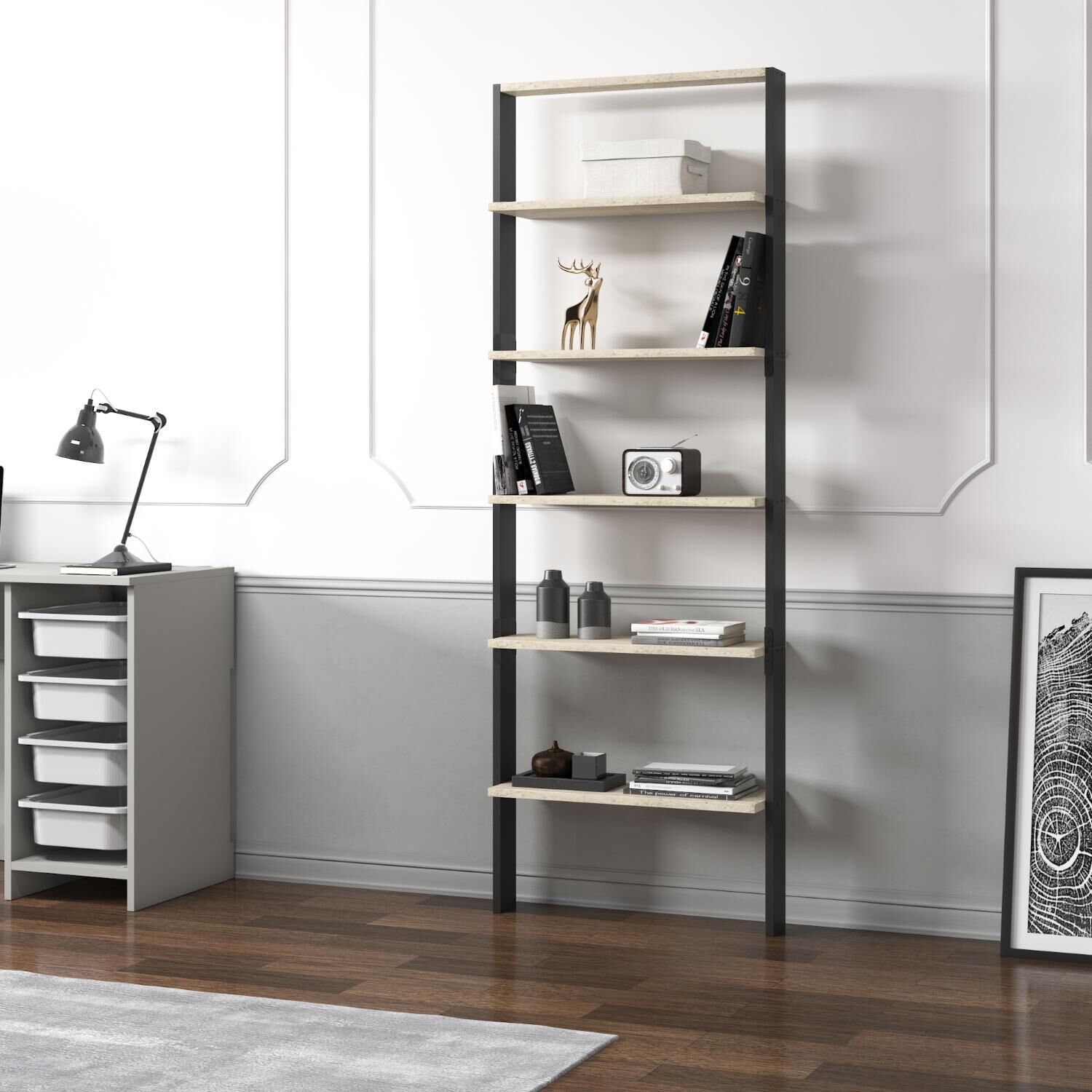 Hero Kitaplık, modern çizgileri ve endüstriyel detaylarıyla yaşam alanlarınıza şıklık ve düzen katıyor. Antrasit metal gövdesiyle sağlamlık sunarken; beyaz, antik ceviz ve traverten desenli raf seçenekleriyle dekorasyon tarzınıza uyum sağlar. 5 geniş rafı sayesinde kitaplarınızı, dekoratif objelerinizi ve dosyalarınızı düzenli bir şekilde sergileyebilirsiniz.
