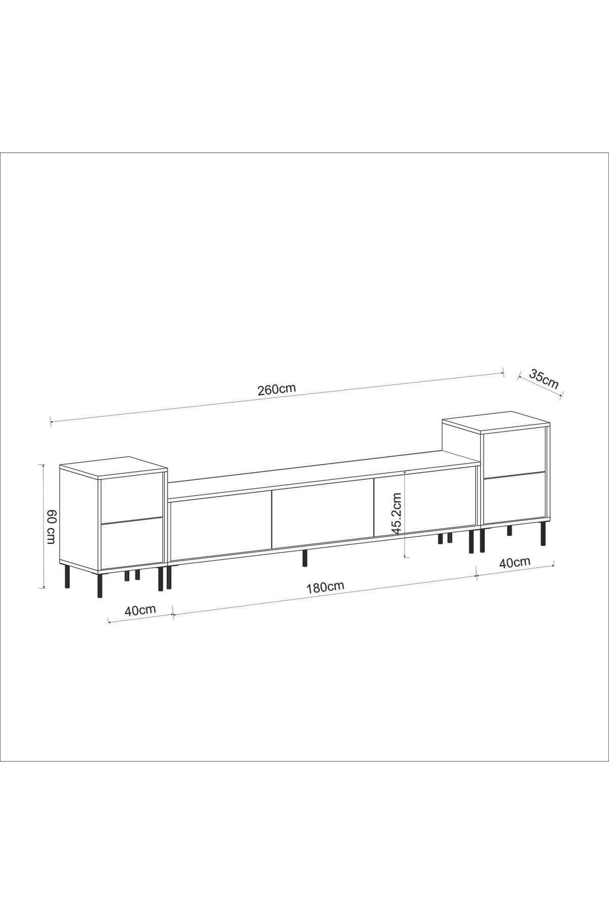 Geniş iç hacmi sayesinde hem depolama hem dekoratif kullanım sunar. TV’nizi şık bir şekilde konumlandırırken; kitap, aksesuar, elektronik cihaz gibi eşyalarınızı da düzenli biçimde yerleştirebilirsiniz.