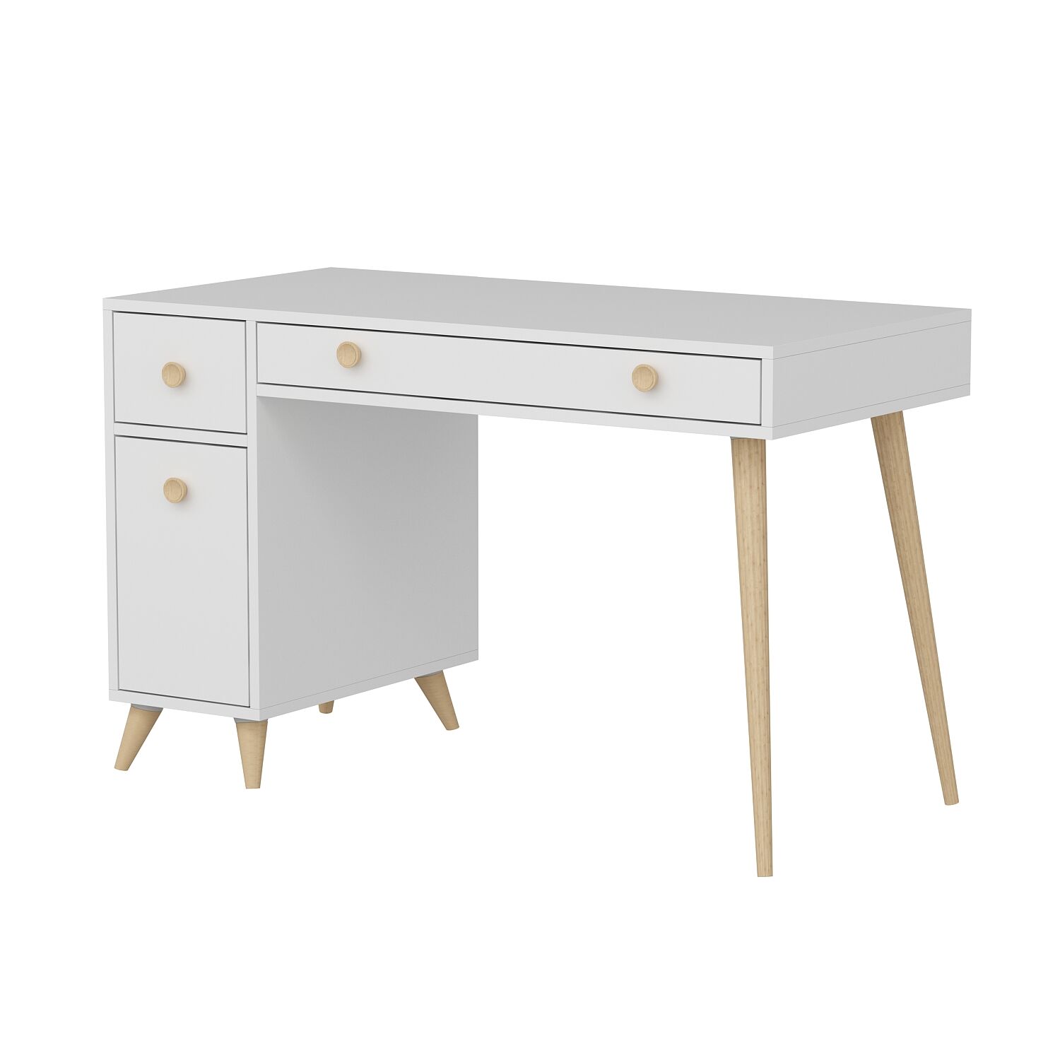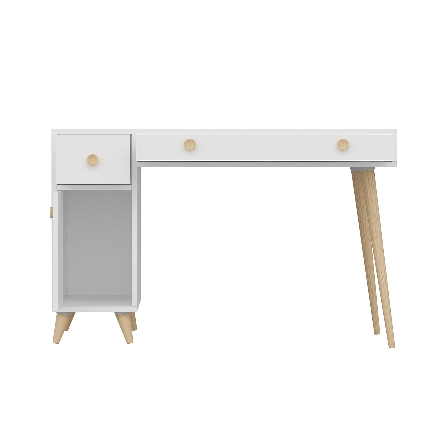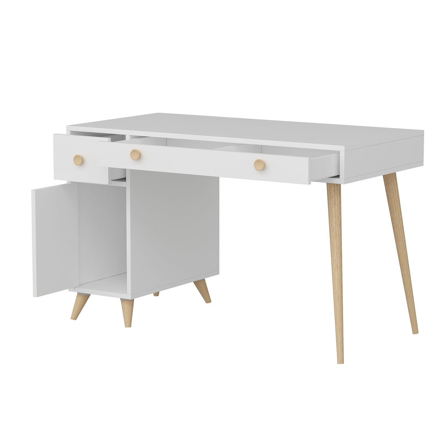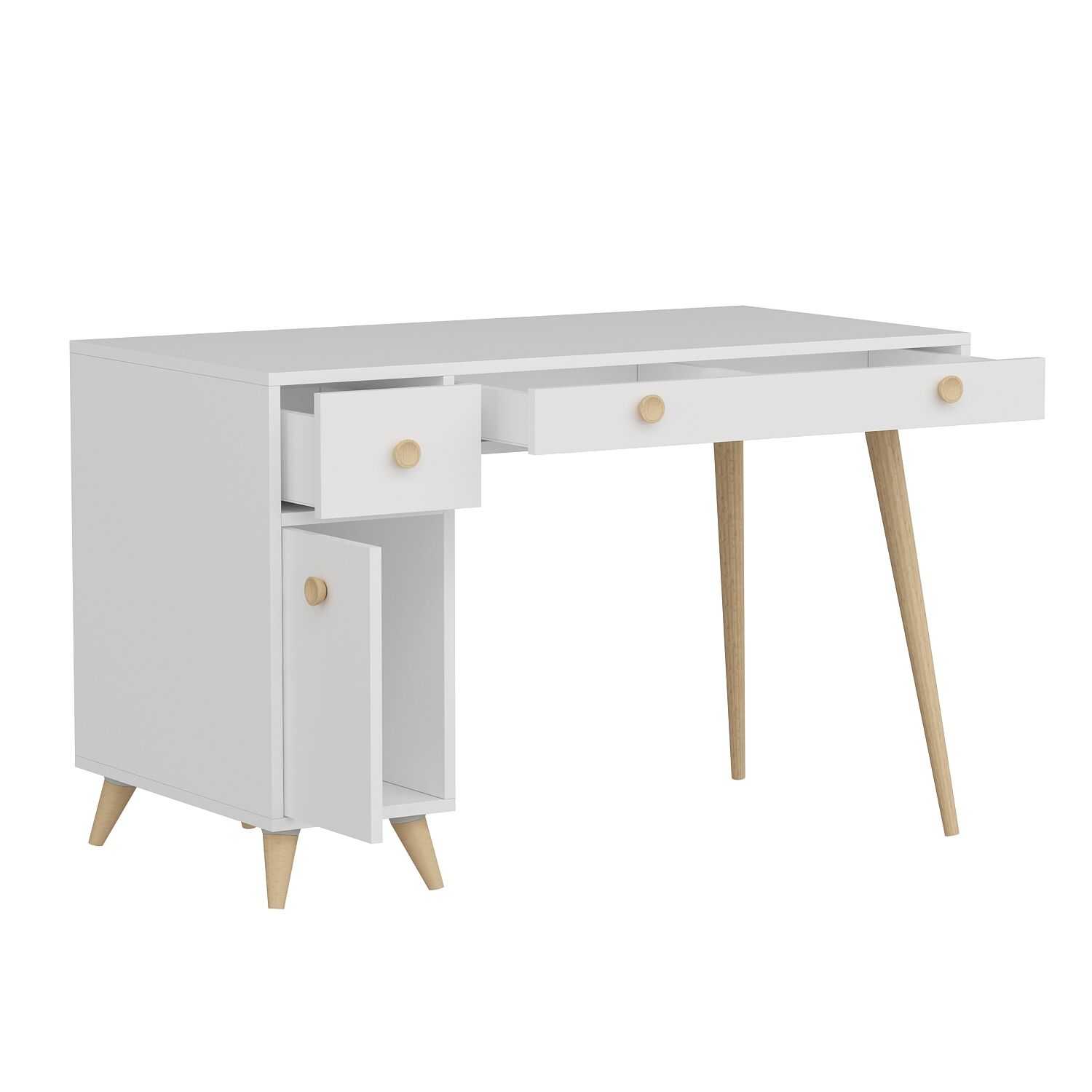 Modern İskandinav tarzını yansıtan ahşap ayaklar, estetik görünümle birlikte sağlamlık da sunar. Beyaz yüzeyi sayesinde her dekorasyon tarzına uyum sağlar. Dayanıklı suntalam malzemeden üretilmiş olup uzun ömürlü kullanım imkanı tanır.