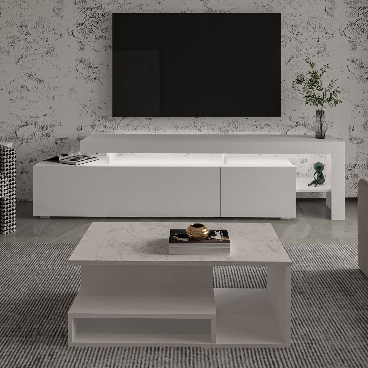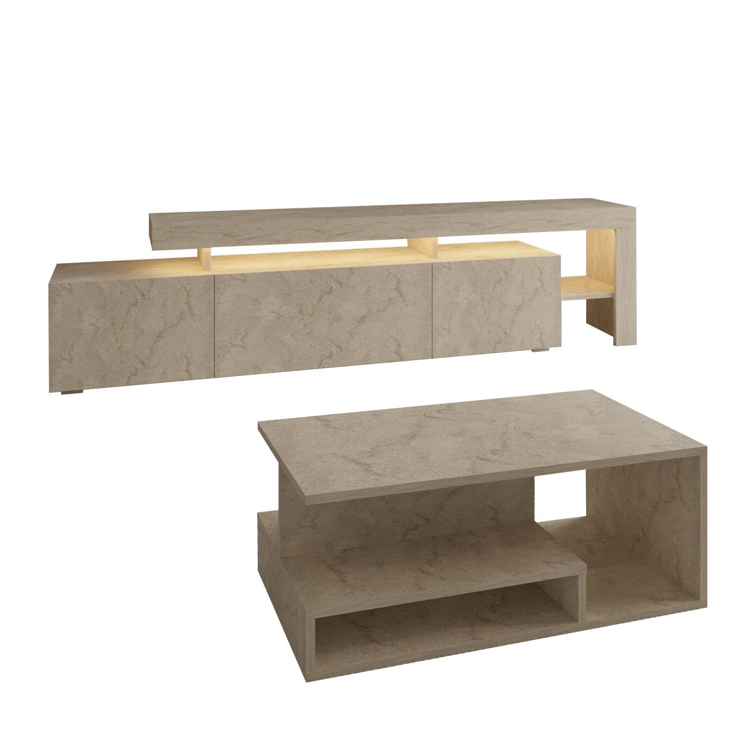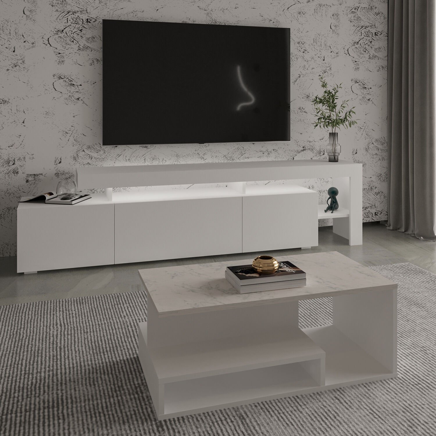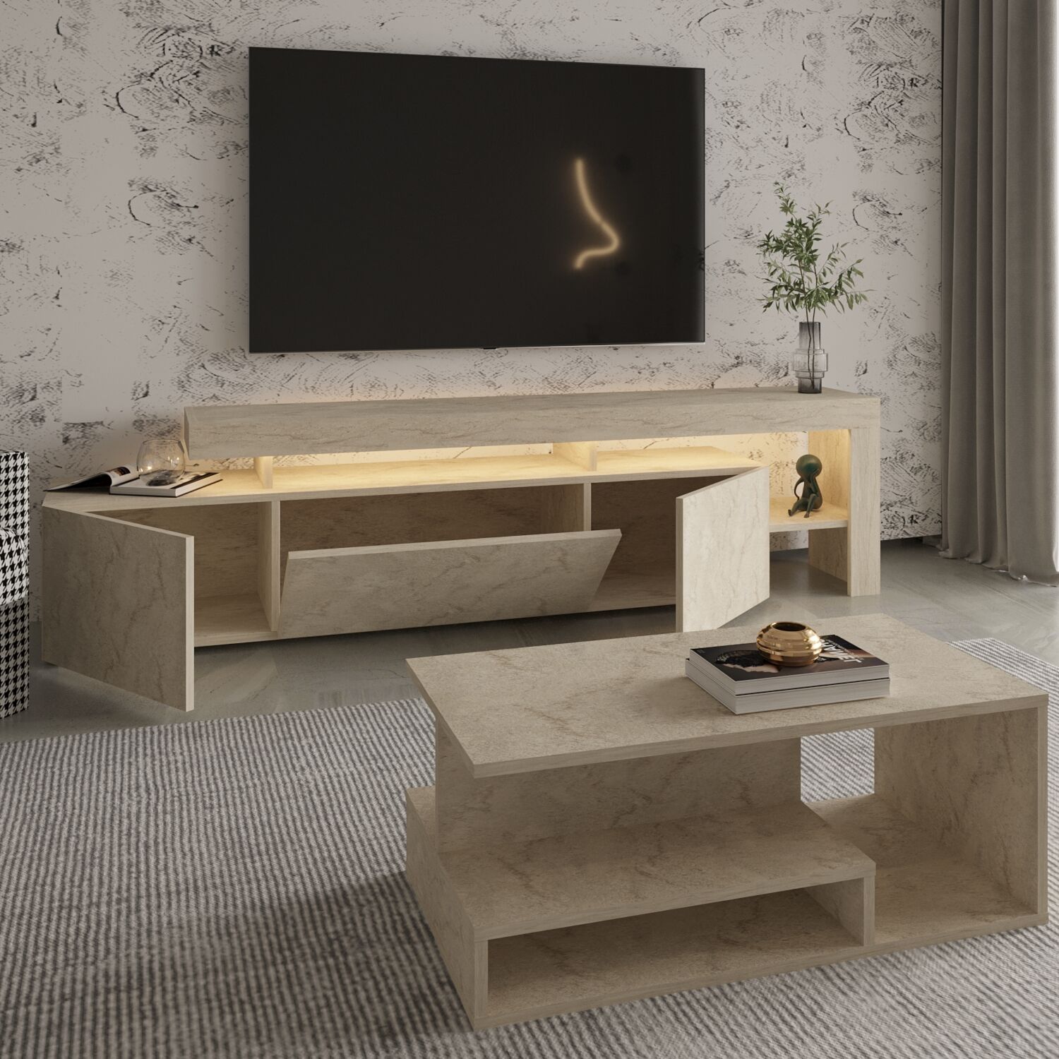 Salonunuza modern bir dokunuş katacak Beliz LED Işıklı TV Sehpası ve Vera Orta Sehpa Set, şık tasarımı ve fonksiyonel yapısıyla öne çıkıyor.