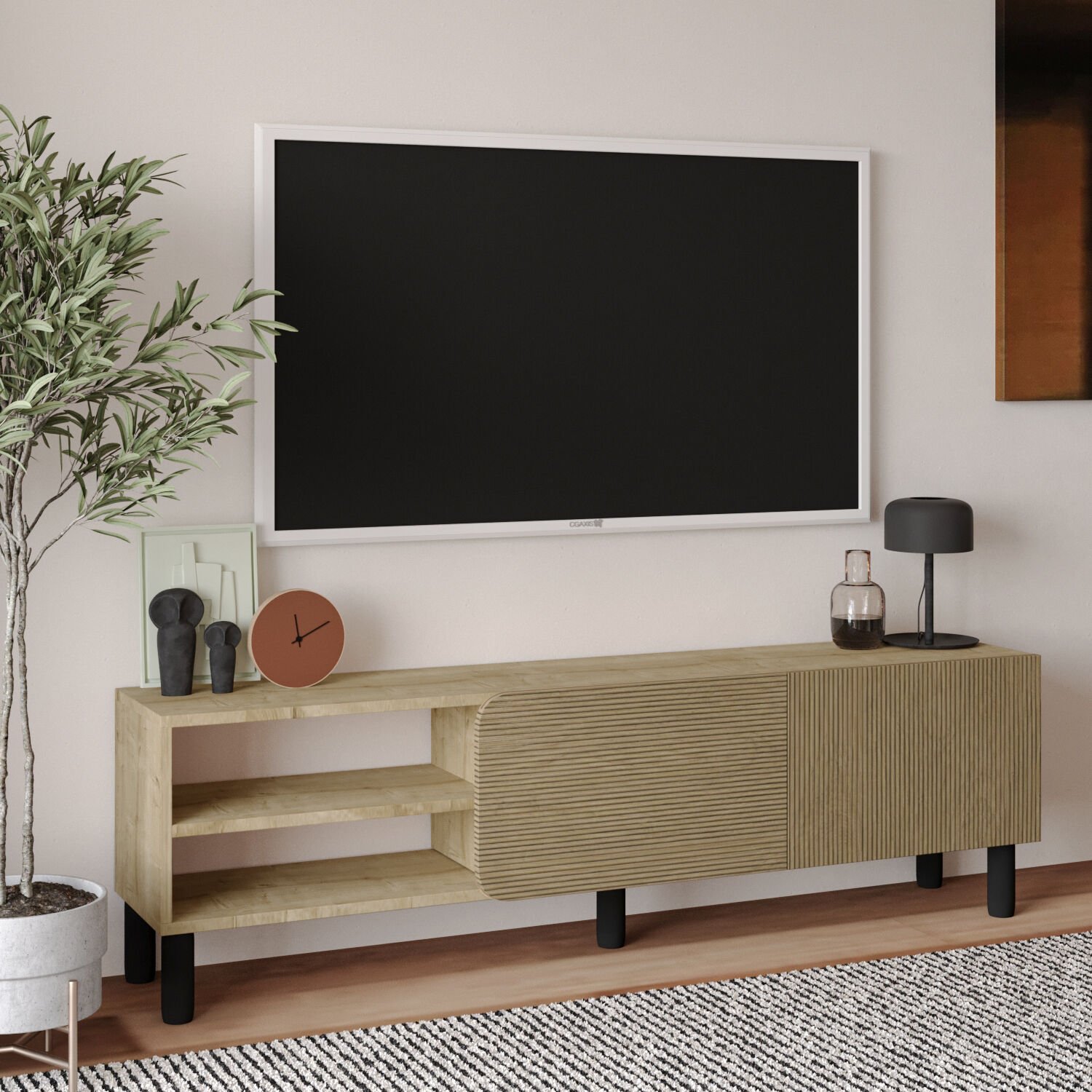 İnarch Dizayn River 150 cm Modern TV Sehpası – Kapaklı ve Raflı Tasarım