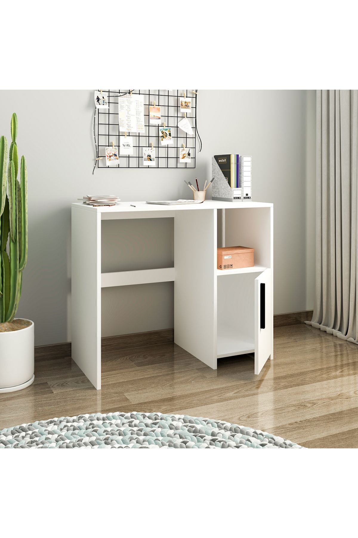 Kuzey Çalışma Masası, modern ve sade tasarımı ile hem ev hem de ofis kullanımına uygun, yerden tasarruf sağlayan fonksiyonel bir çözümdür. Kompakt ölçüleri sayesinde dar alanlarda bile rahatlıkla kullanılabilir. Sağ kısmında yer alan kapaklı bölme ve açık raflar; defter, kitap, evrak ya da kişisel eşyalarınız için ideal saklama alanı sunar. Minimalist çizgileriyle estetik görünüm kazanan masa, dayanıklı malzeme yapısı ile uzun ömürlü kullanım vadeder.