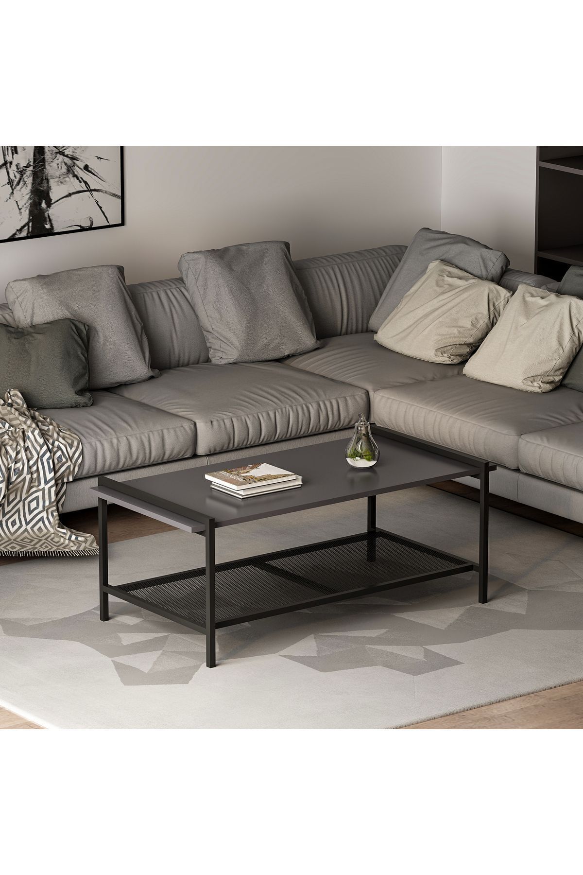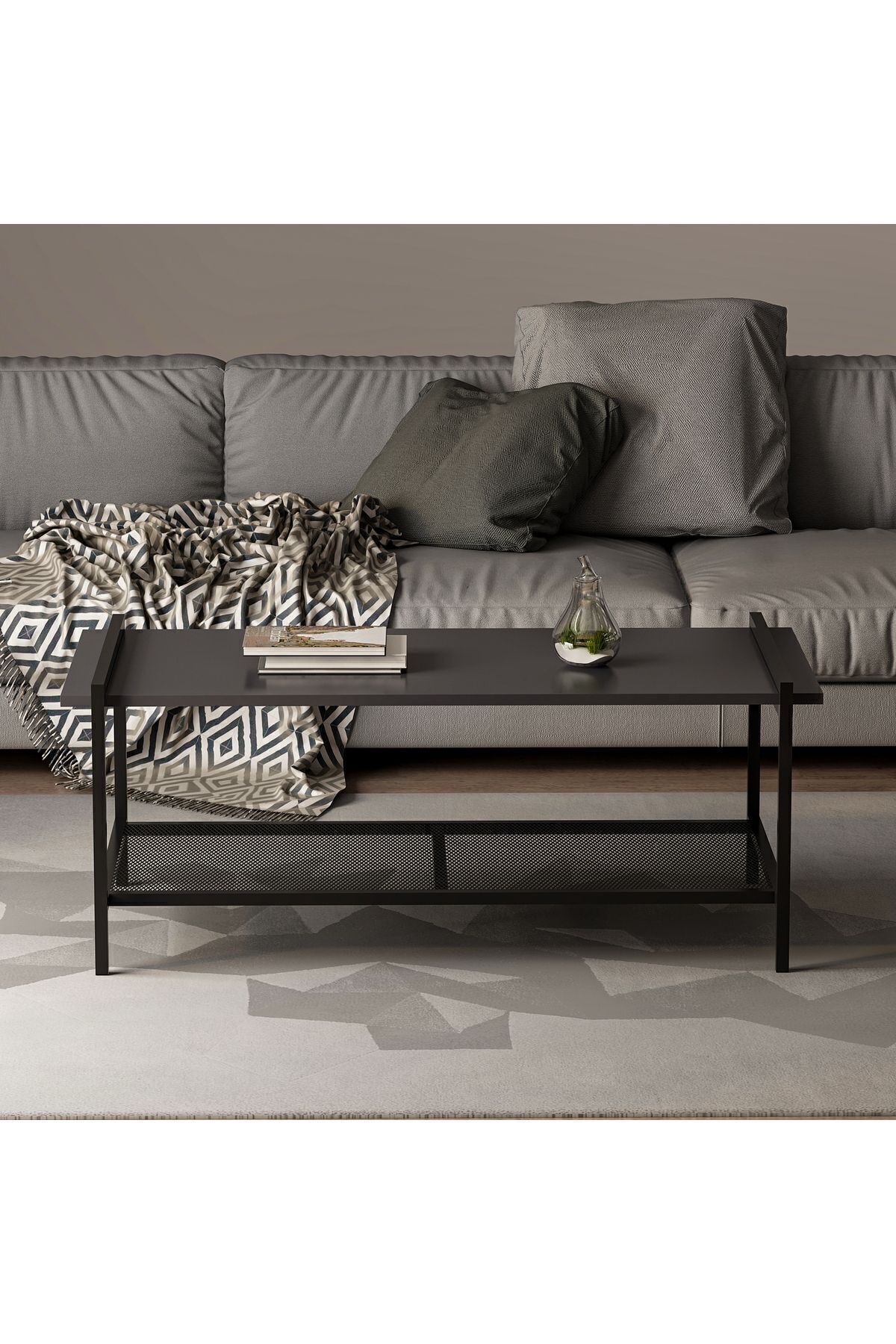 - Metal örgü raf ile pratik kullanım