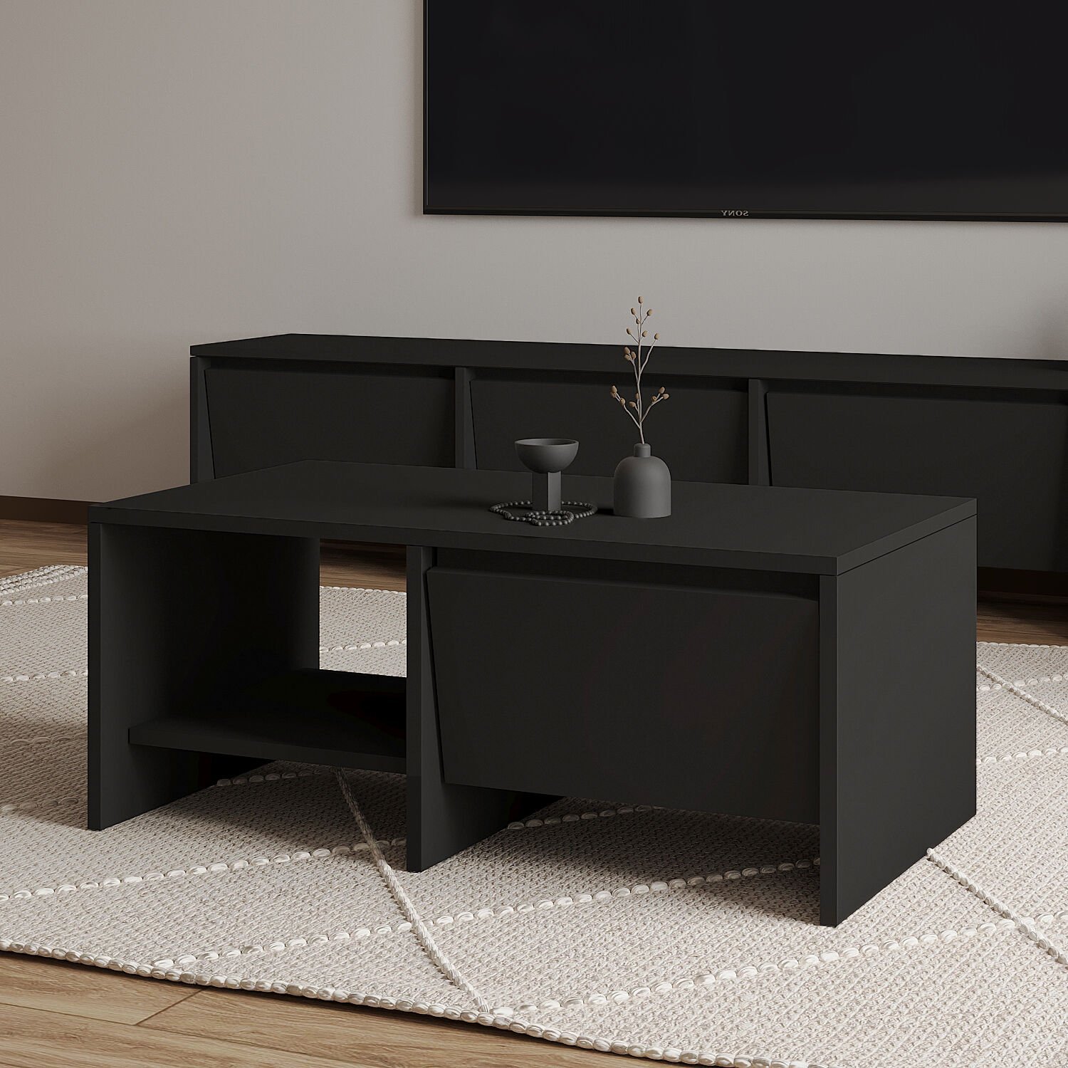 Laris 90 cm Kapaklı Orta Sehpa, modern yaşam alanları için hem estetik hem de işlevsel bir çözüm sunar. Minimalist tasarımı, taş dokulu yüzeyi ve kapaklı raf bölmesiyle salon dekorasyonuna zarif bir dokunuş katar. Ceviz, traverten, beyaz, antrasit ve siyah olmak üzere 5 farklı renk seçeneğiyle her tarza uyum sağlar.