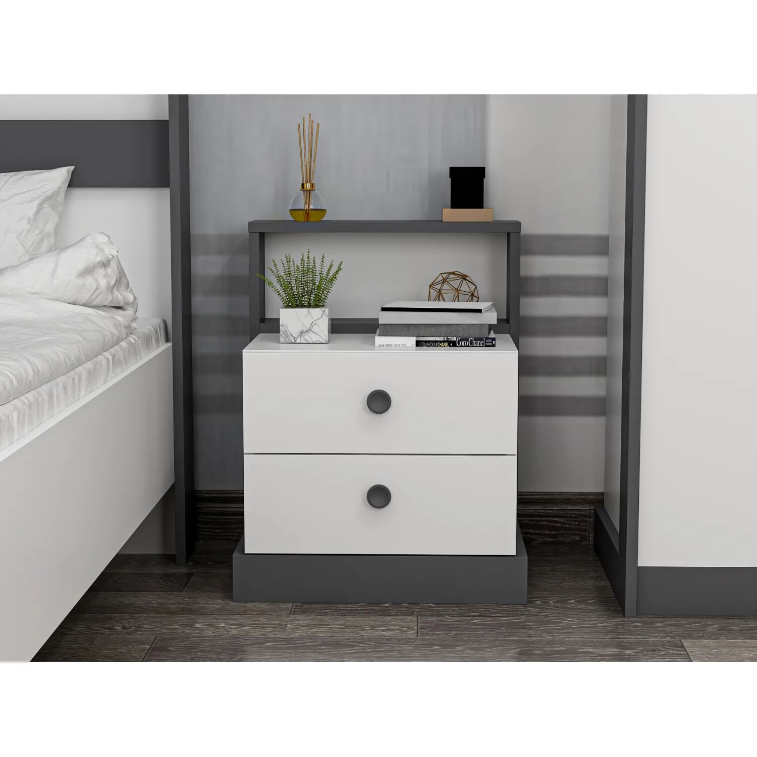 Life 2 Çekmeceli Komodin, yatak odanıza şıklık ve düzen kazandırmak için özel olarak tasarlandı. Beyaz ve beyaz-antrasit olmak üzere iki farklı renk seçeneğiyle her zevke ve dekorasyon tarzına hitap eder. Kompakt ölçüleri sayesinde küçük alanlarda bile rahatça kullanılabilir.