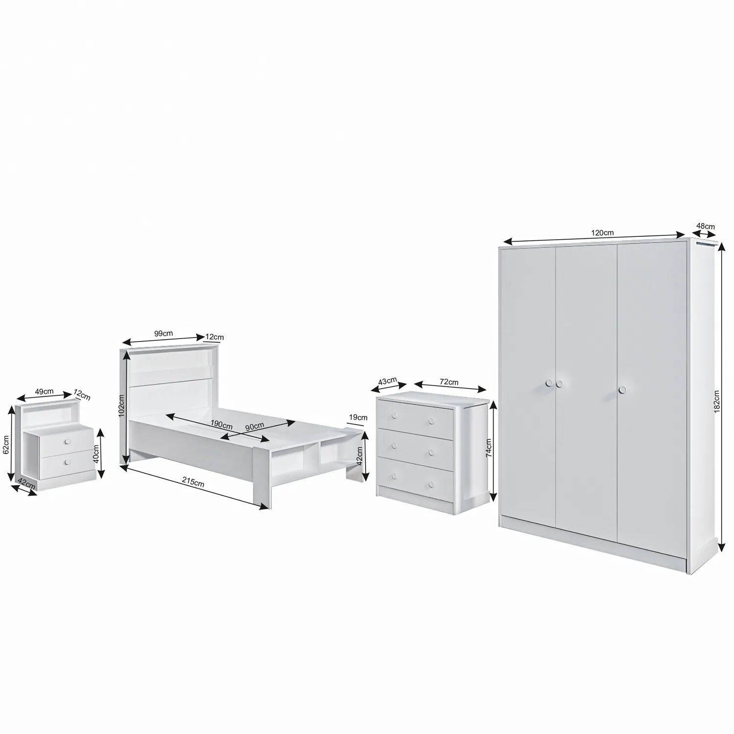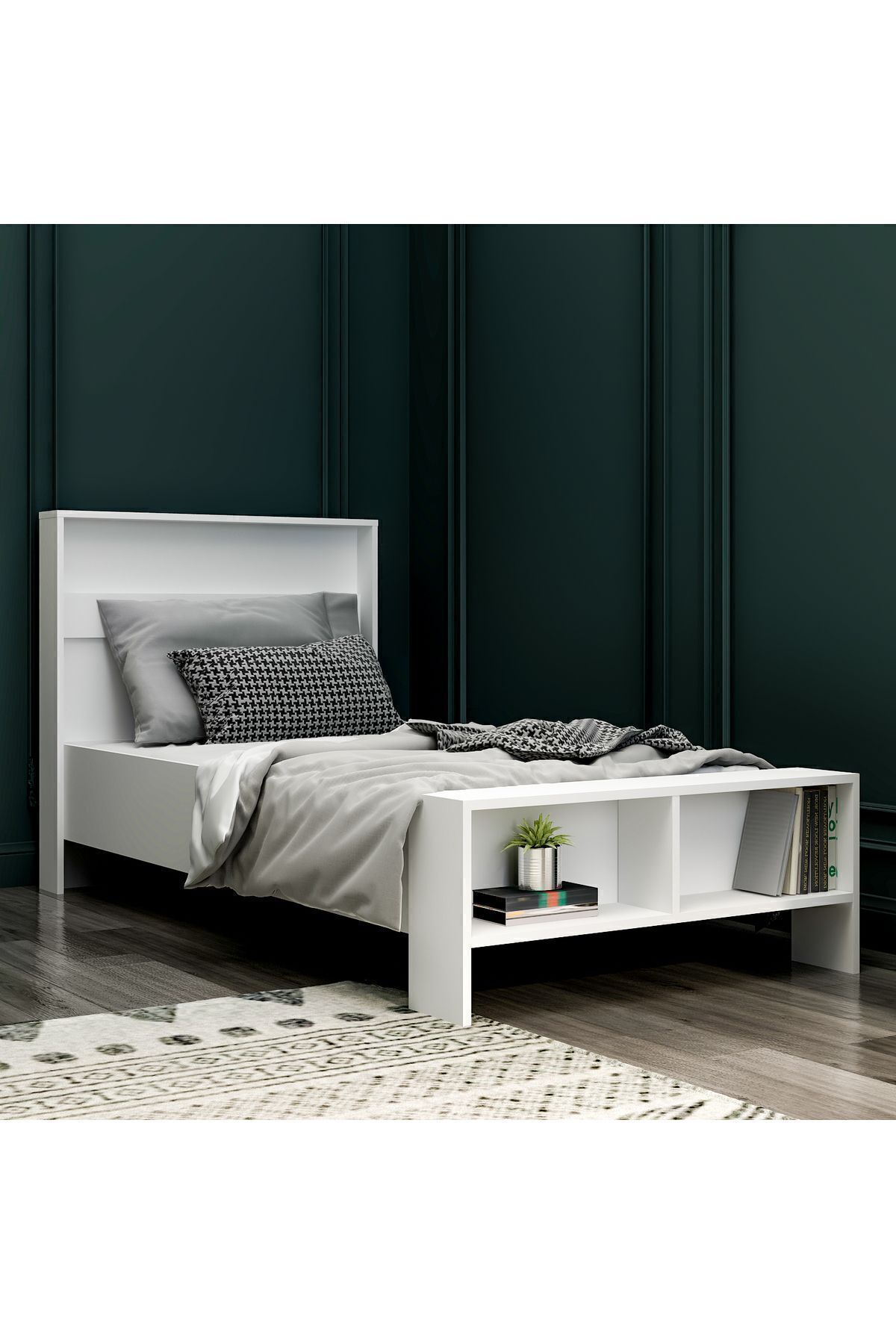 - 1 Adet Tek Kişilik Karyola: 90x190 cm yatak ölçüsüne uygundur. Başlık kısmında açık raf bölmesi ve ayak ucunda kitaplık işlevi gören bölmeler mevcuttur.