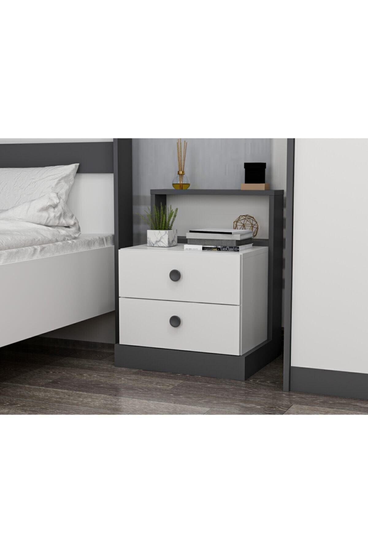 - 1 Adet 2 Çekmeceli Komodin: Başucunuzda şık ve kullanışlı bir çözüm. Üst kısmında açık raflı alan mevcuttur.
