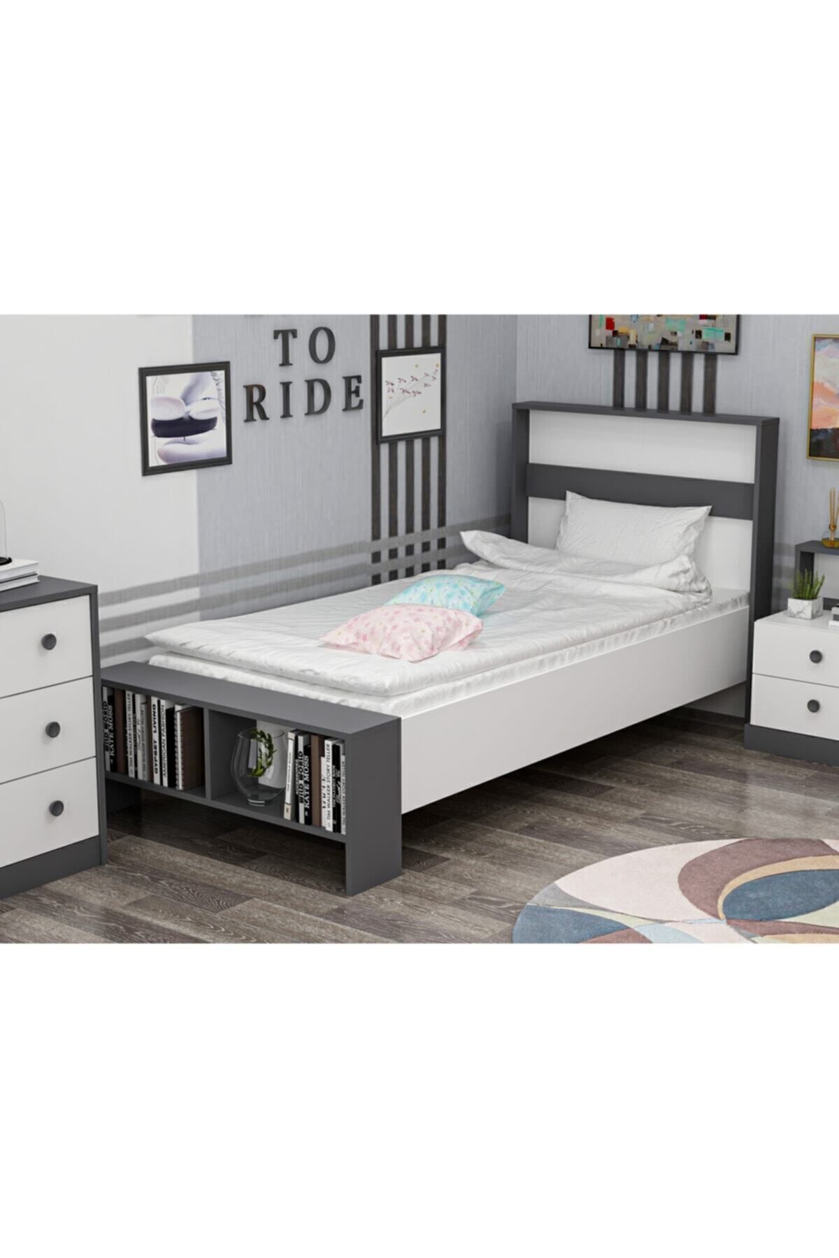 Kaliteli melamin kaplı yonga levhadan üretilen bu ürün, hem Beyaz hem de Beyaz/Antrasit olmak üzere iki renk alternatifi ile genç odalarına sade ve modern bir hava katar. 90x190 cm yatak ölçüsüne uygundur. Başlık yüksekliği ve açık raf detayları, hem estetik hem de işlevsel bir çözüm sunar.