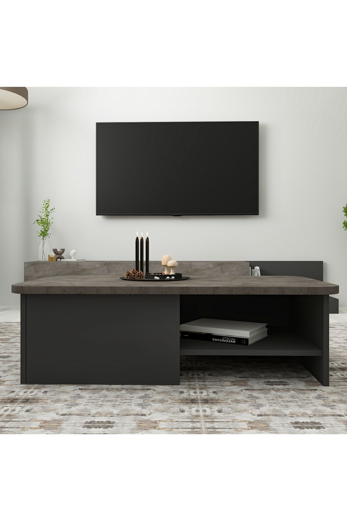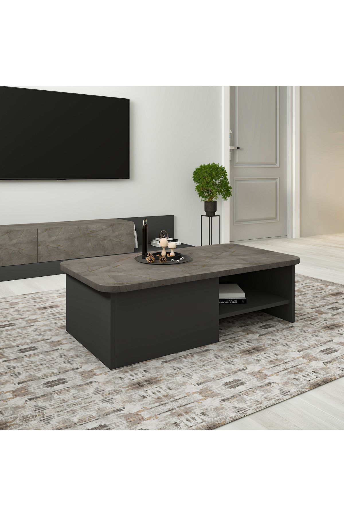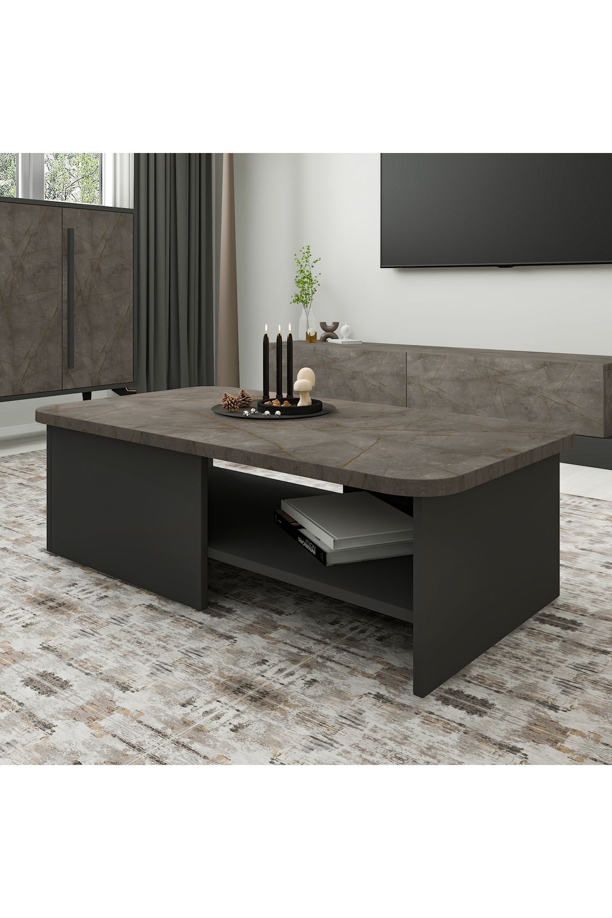 P0015323 Majör Orta Sehpa Gordion Mermer/Antrasit