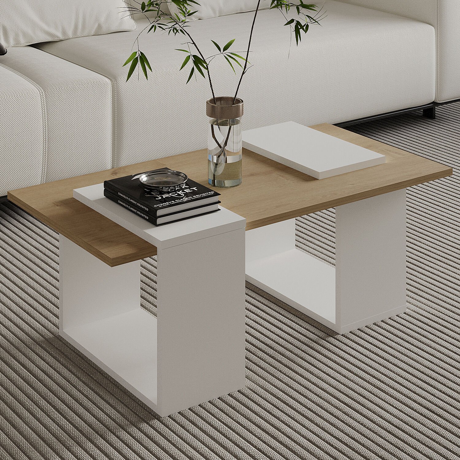 Modern yaşam alanları için özel olarak tasarlanan Matris Orta Sehpa, geometrik ayak yapısı ve zarif yüzey seçenekleriyle salon dekorasyonuna sofistike bir dokunuş katıyor. Traverten, ceviz, beyaz meşe ve mermer görünümlü alternatifleriyle her tarza uyum sağlar. Minimalist çizgileri ve sağlam yapısıyla hem estetik hem işlevsel bir orta sehpa arayanlar için ideal bir seçimdir.