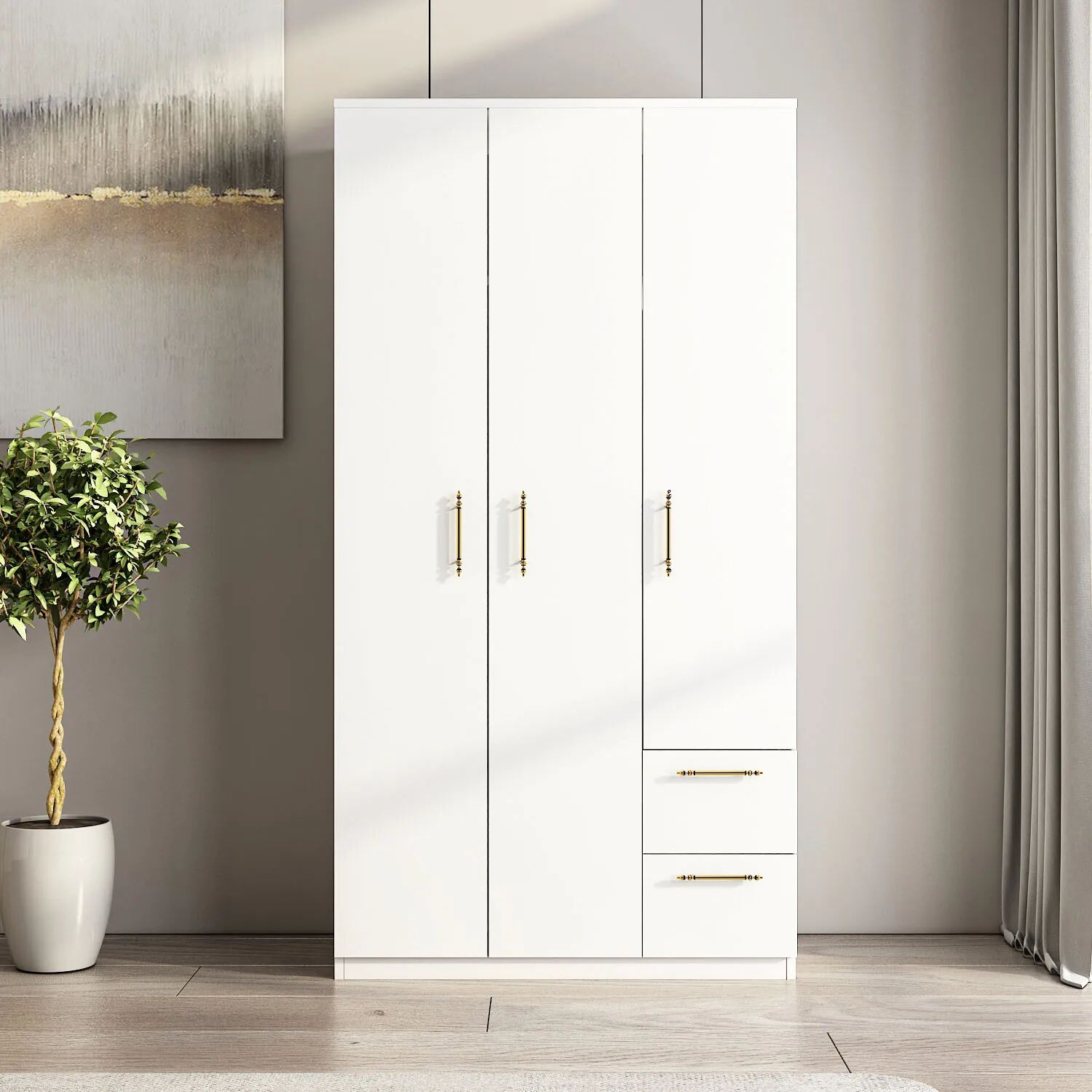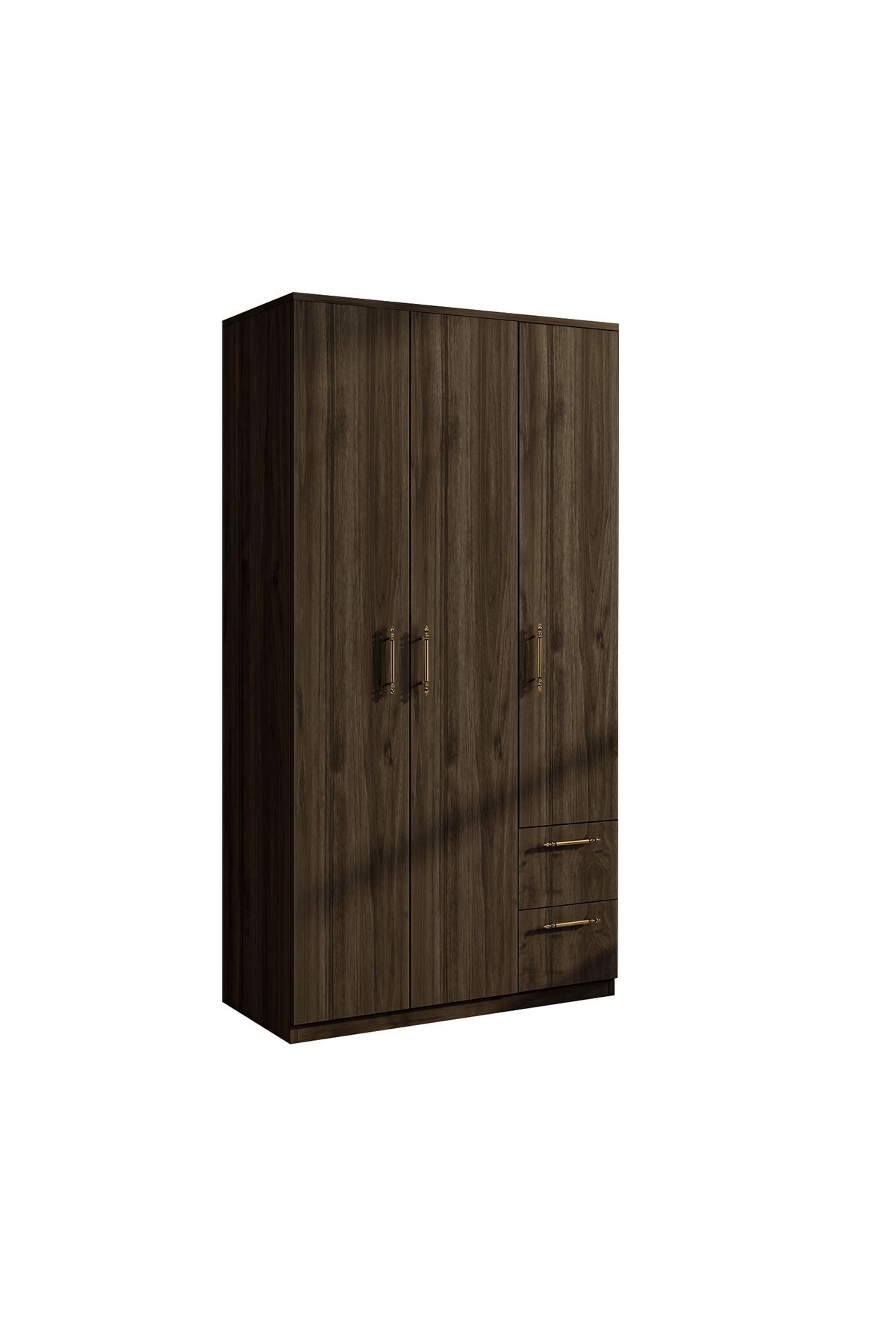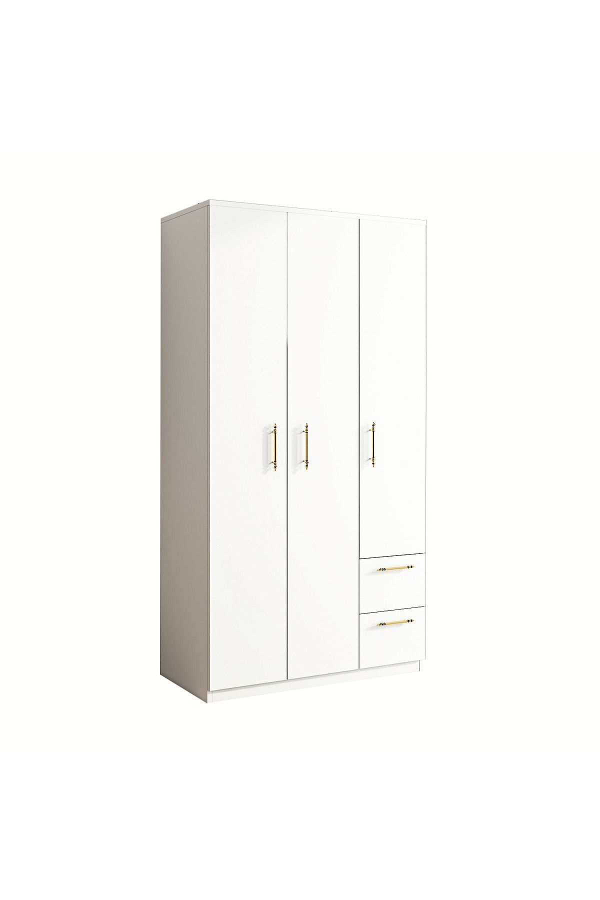 Merin 3 Kapaklı Çekmeceli Gardırop, modern yaşam alanları için tasarlanmış, hem estetik hem de yüksek depolama kapasitesi sunan fonksiyonel bir dolap çözümüdür. Beyaz ve İstanbul ceviz olmak üzere iki farklı renk seçeneğiyle sunulan bu model, farklı dekorasyon tarzlarına kolayca uyum sağlar.