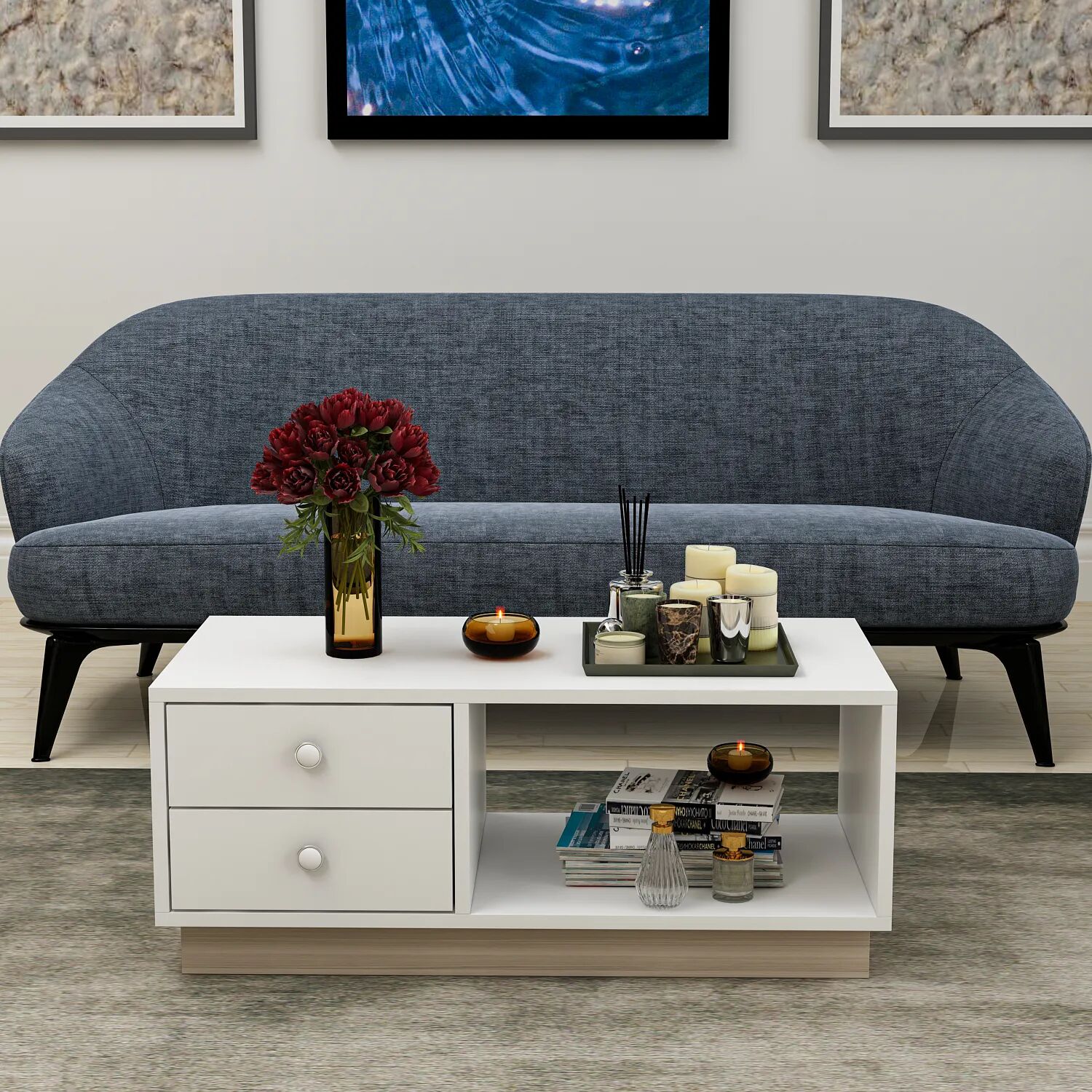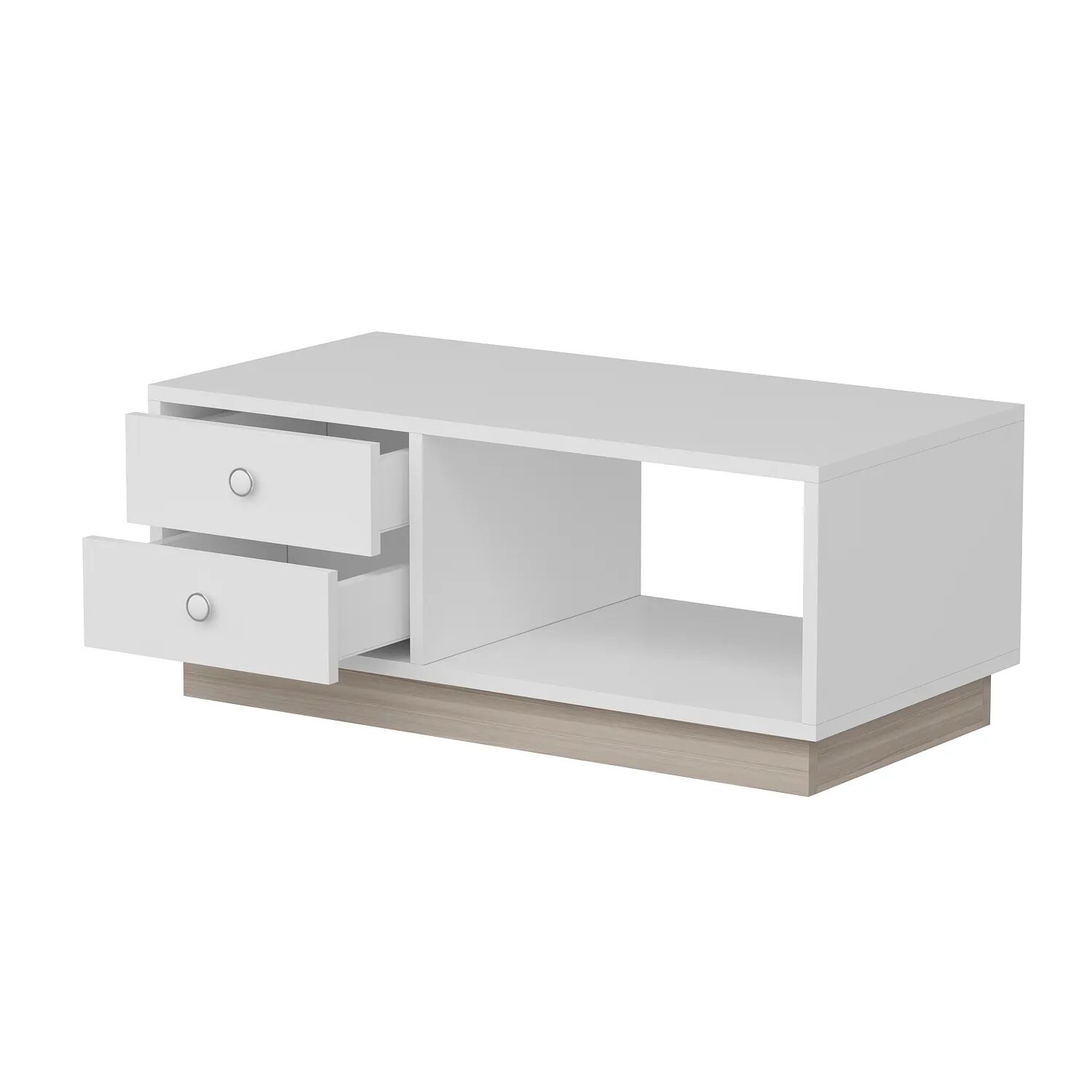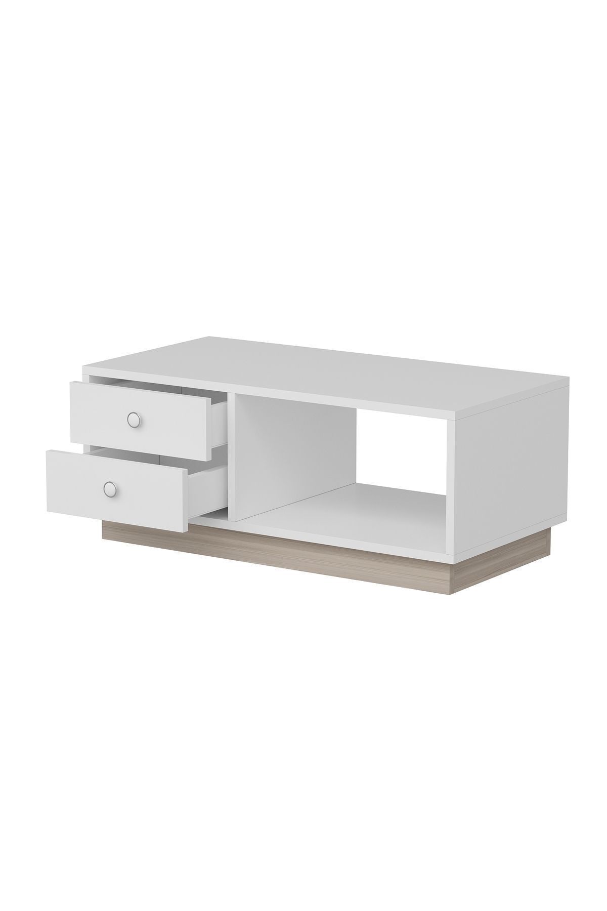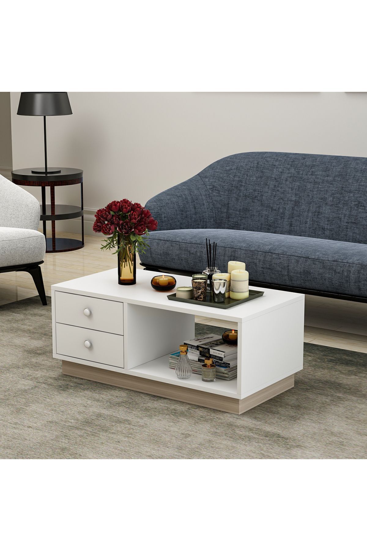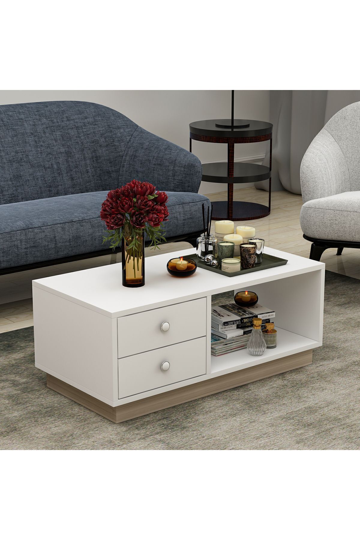 Moskovo Orta Sehpa, hem fonksiyonel hem de şık bir yaşam alanı sunmak isteyenler için özel olarak tasarlandı. Beyaz gövdesi ve ahşap bazasıyla modern tarzı sade çizgilerle buluşturur. 2 adet geniş çekmecesi ile uzaktan kumanda, dergi, kitap gibi günlük eşyalarınızı kolayca saklayabilir, açık raf bölümü sayesinde dekoratif objelerinizi sergileyebilirsiniz. Kolay temizlenebilir yüzeyi ve sağlam yapısı ile uzun ömürlü kullanım sunar. Oturma odanızda düzen ve estetiği bir arada yaşayın.