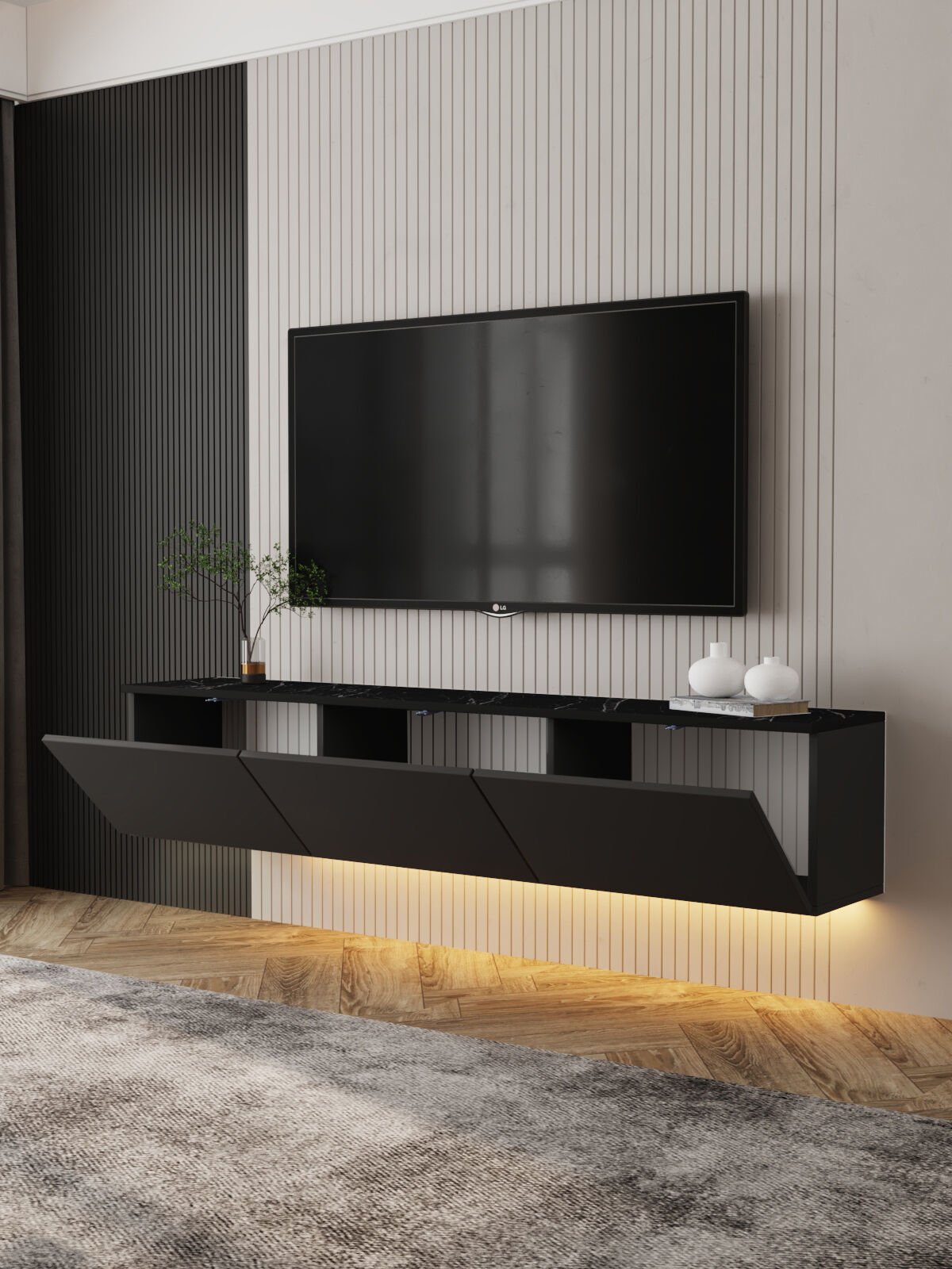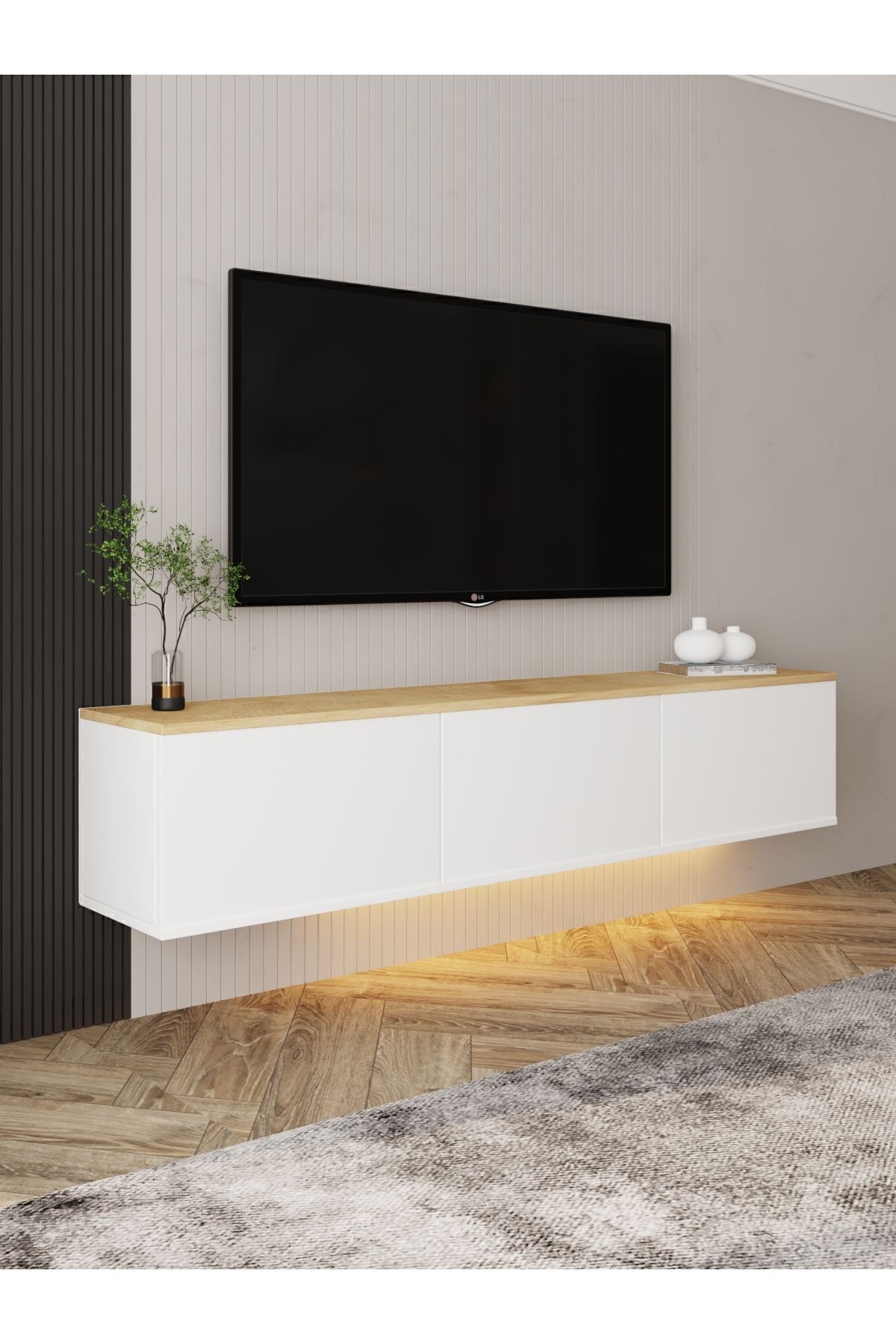 Modern çizgisi ve yenilikçi yapısıyla dikkat çeken Neon LED Işıklı Duvara Monte TV Sehpası, salonunuza sade ve sofistike bir görünüm kazandırır. Askılı yapısı sayesinde zeminde temassız bir düzen oluşturur ve LED aydınlatma detayı ile şık bir ambiyans sunar.