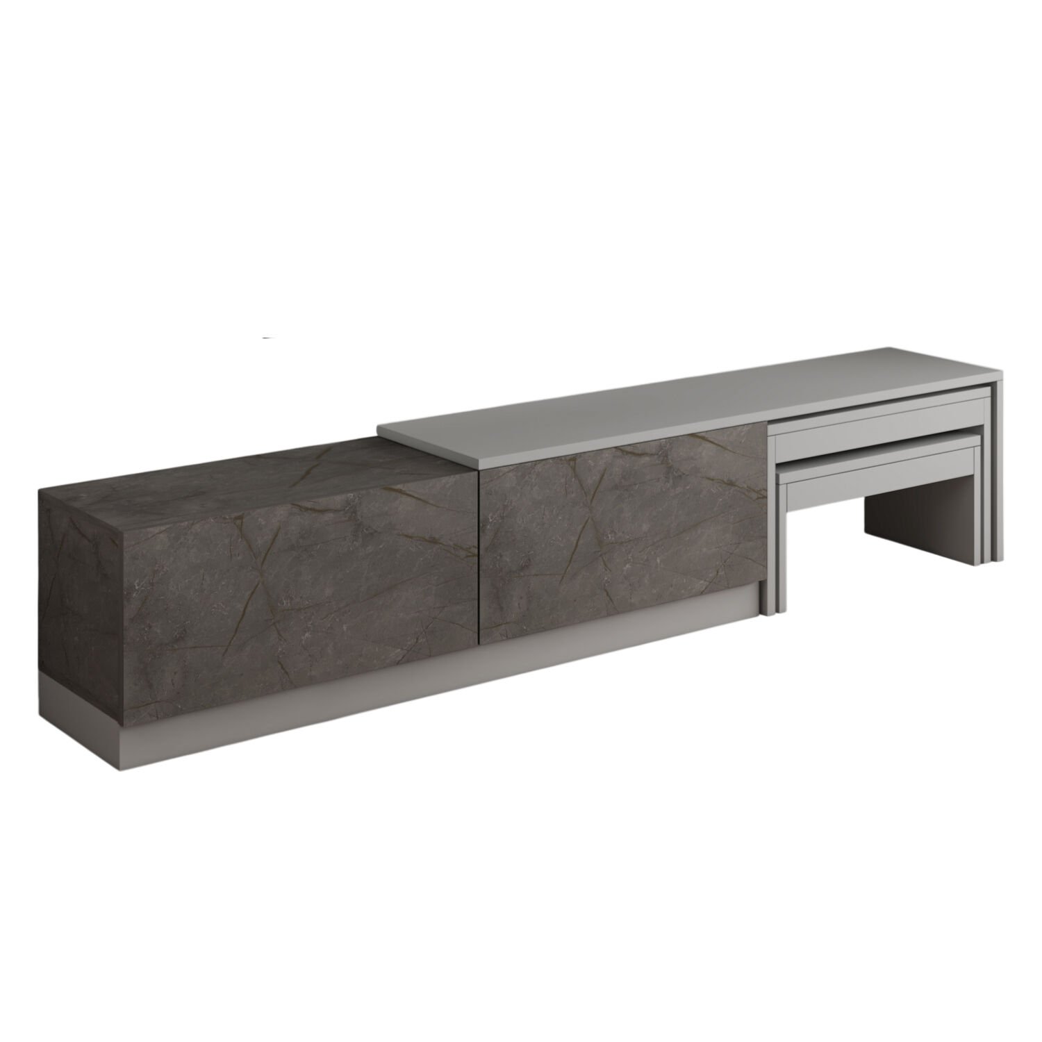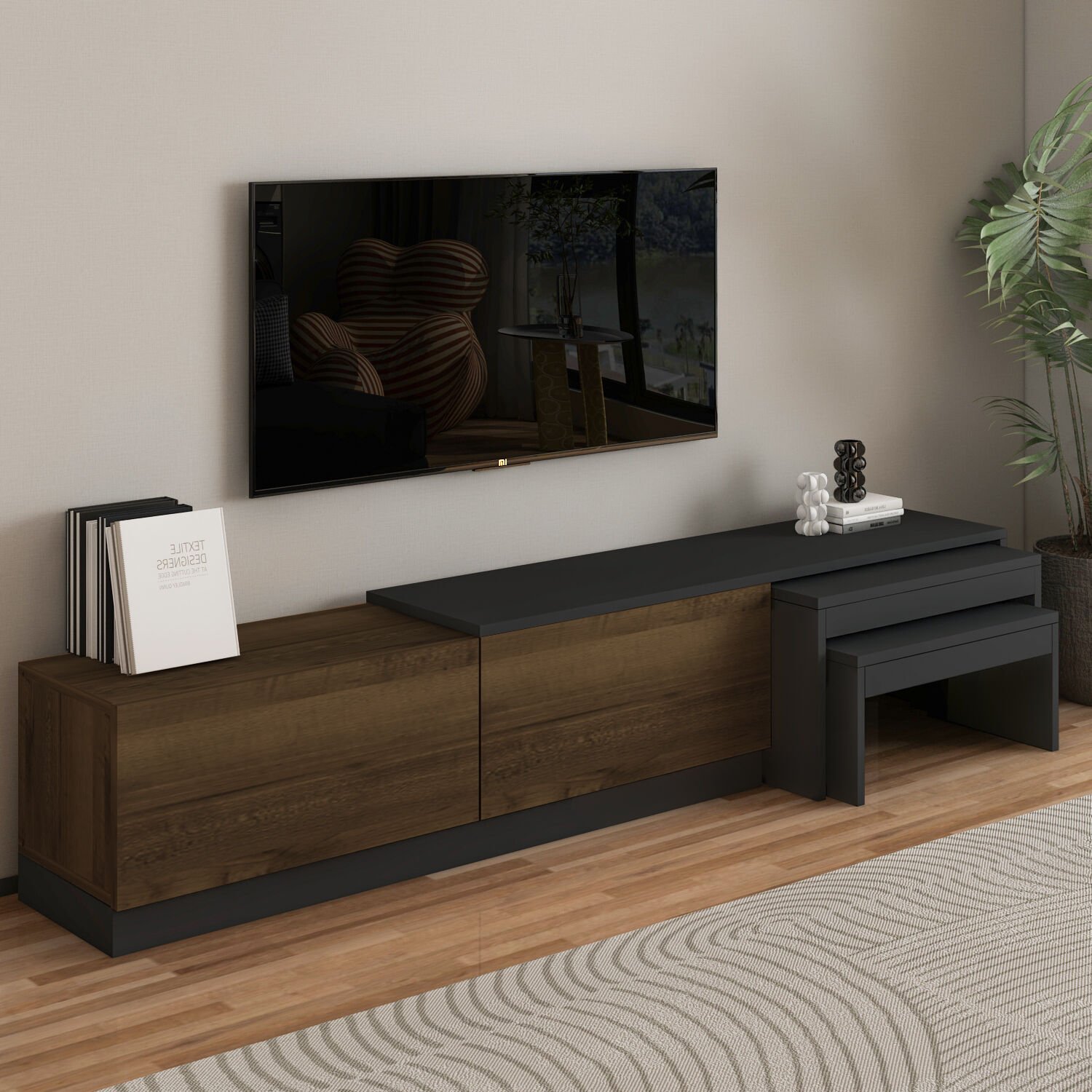 Nest TV Sehpası, modern tasarımı ve fonksiyonel özellikleriyle yaşam alanlarına şıklık ve düzen kazandıran çok amaçlı bir mobilya çözümüdür. İkili zigon sehpa özelliği sayesinde hem dekoratif hem de pratik kullanım sunar. 2 kapaklı depolama alanı ile oturma odasında düzeni korumanıza yardımcı olur.