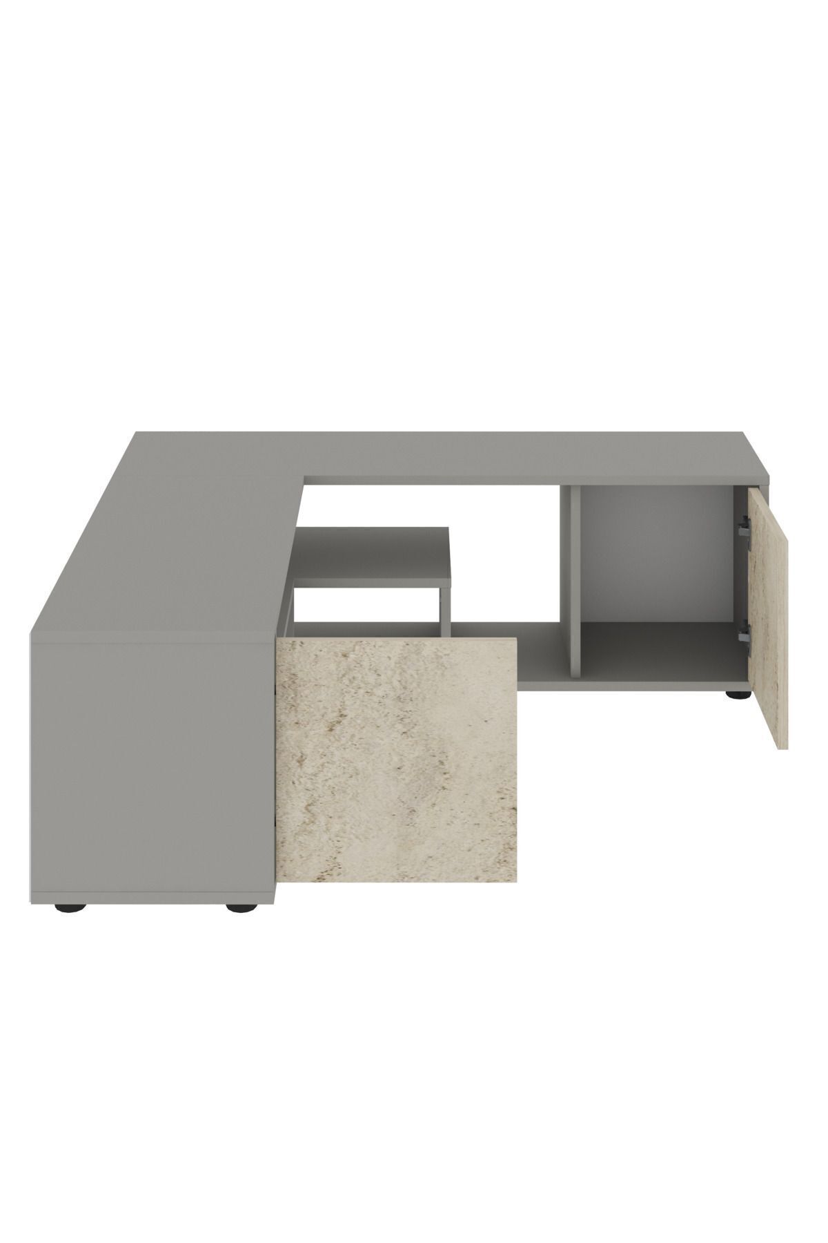 Roza Köşe TV Sehpası, modern yaşam alanlarına şıklık ve pratiklik katmak için özel olarak tasarlanmıştır. L formu sayesinde hem küçük hem geniş salonlara kusursuz uyum sağlar. Köşe yapısı, alan tasarrufu sağlarken iki kapaklı bölmesi ve açık raf alanlarıyla maksimum depolama sunar.