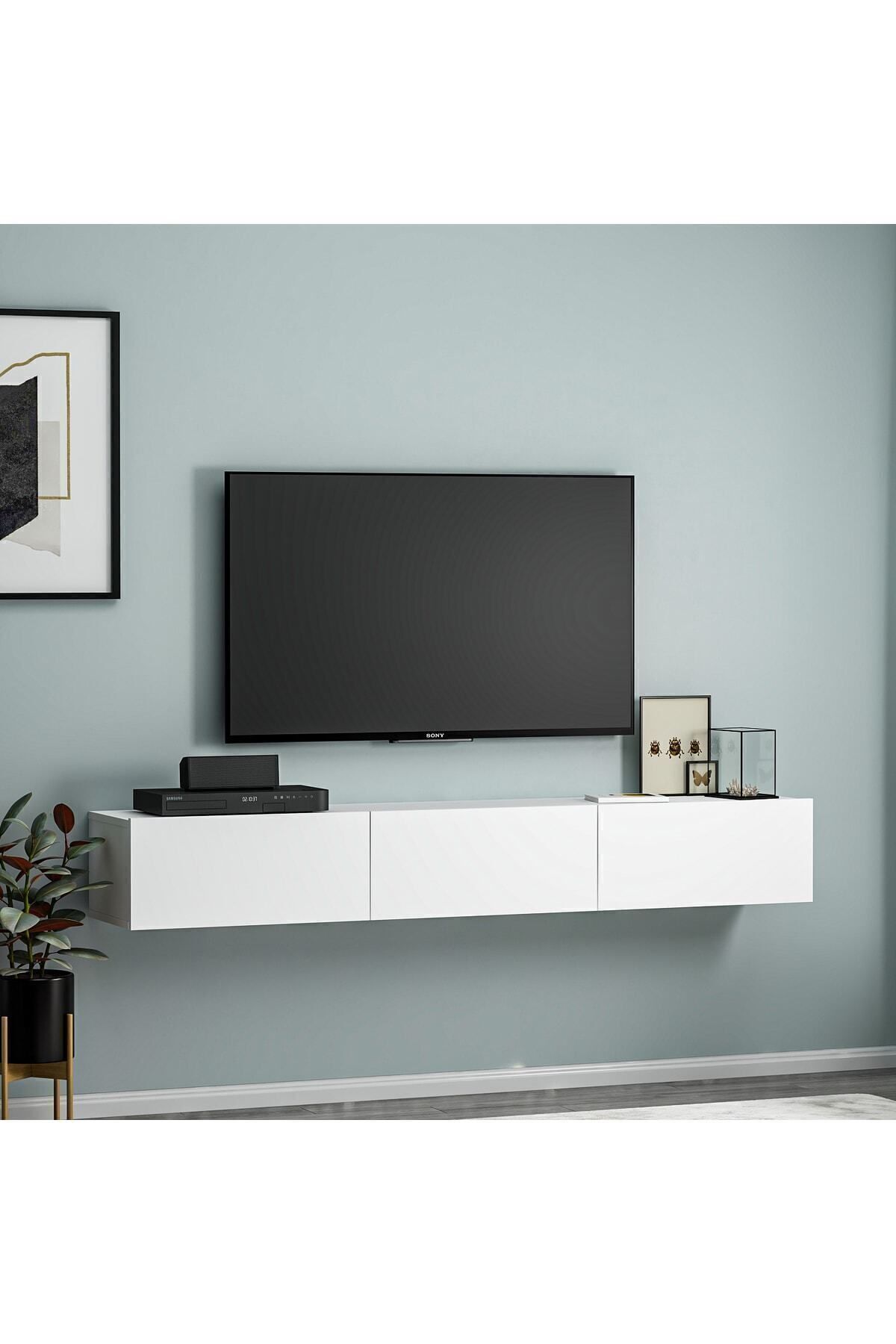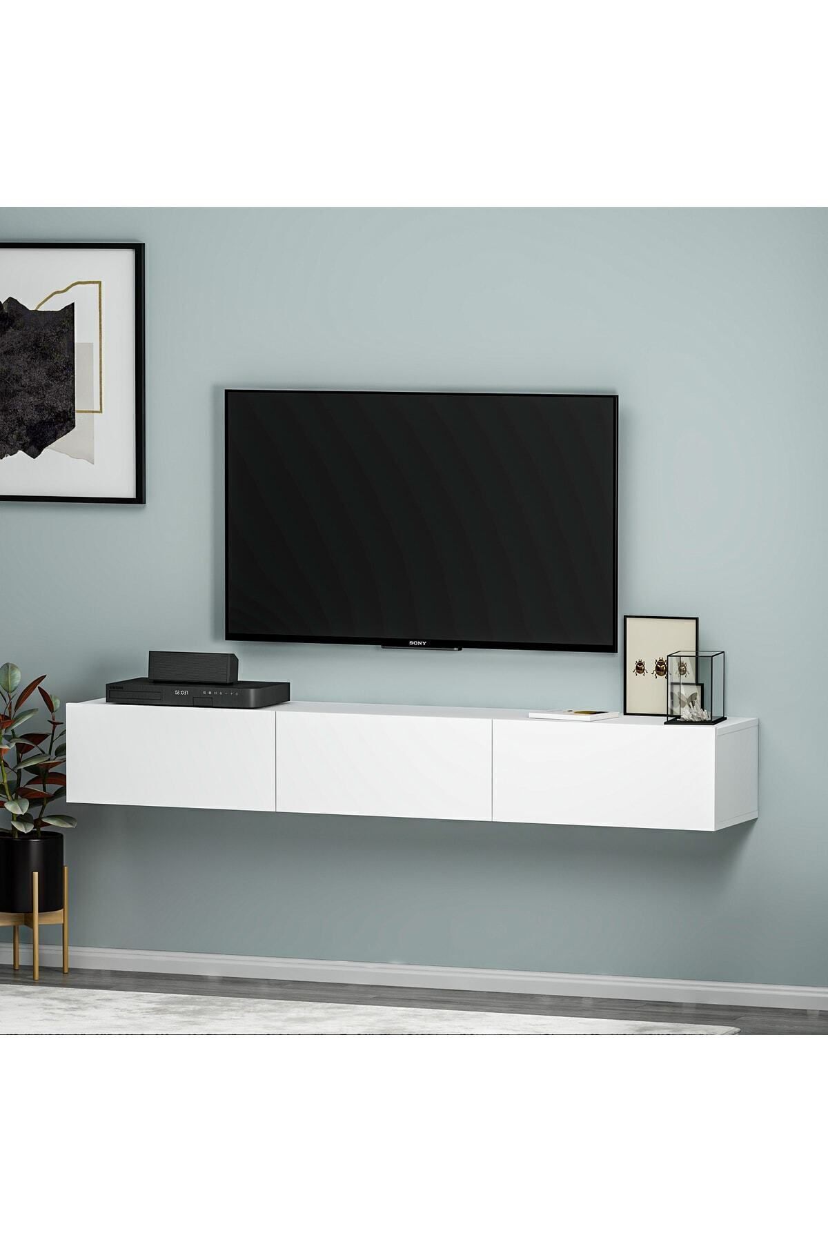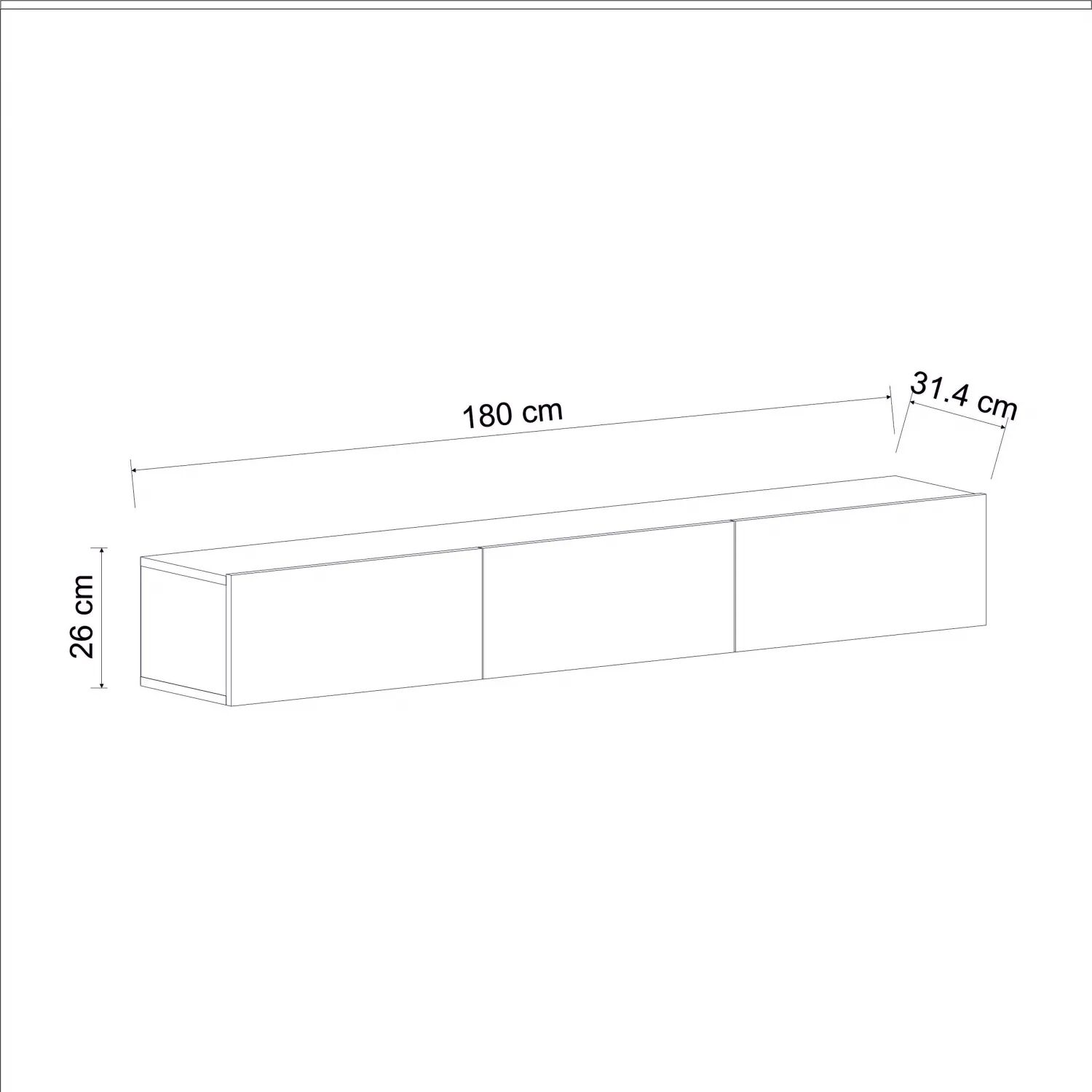 180 cm genişliğe sahip bu zarif ünite, 3 ayrı kapaklı bölmesi ile TV aksesuarlarınızı, kitaplarınızı ya da dijital ekipmanlarınızı düzenli biçimde saklamanızı sağlar. Askı aparatı sayesinde yere temas etmeden monte edilen bu ürün, modern ev dekorasyonlarının vazgeçilmezidir.