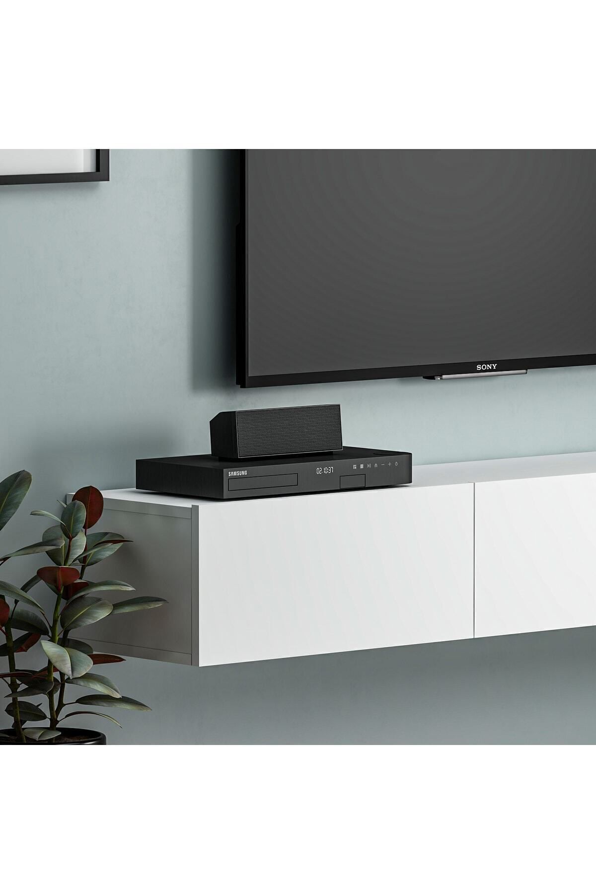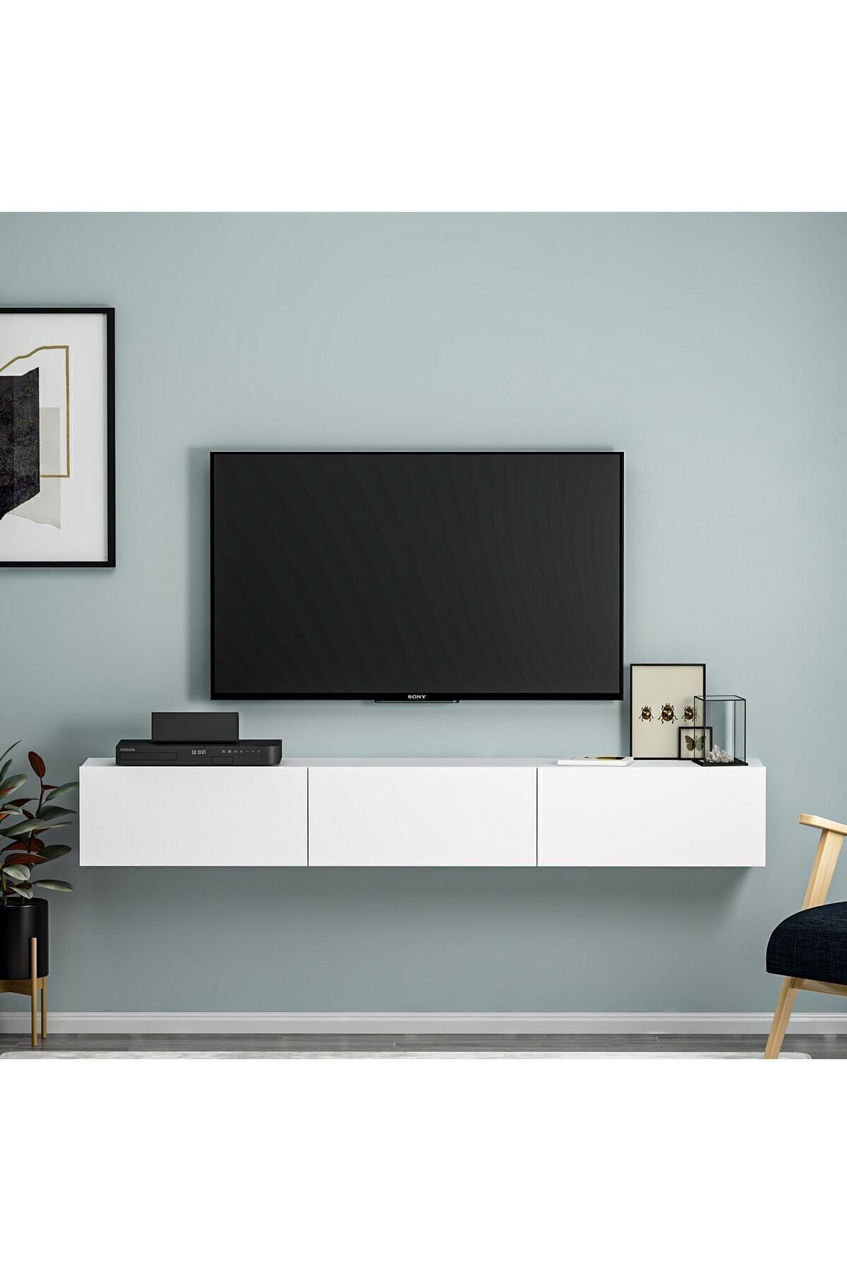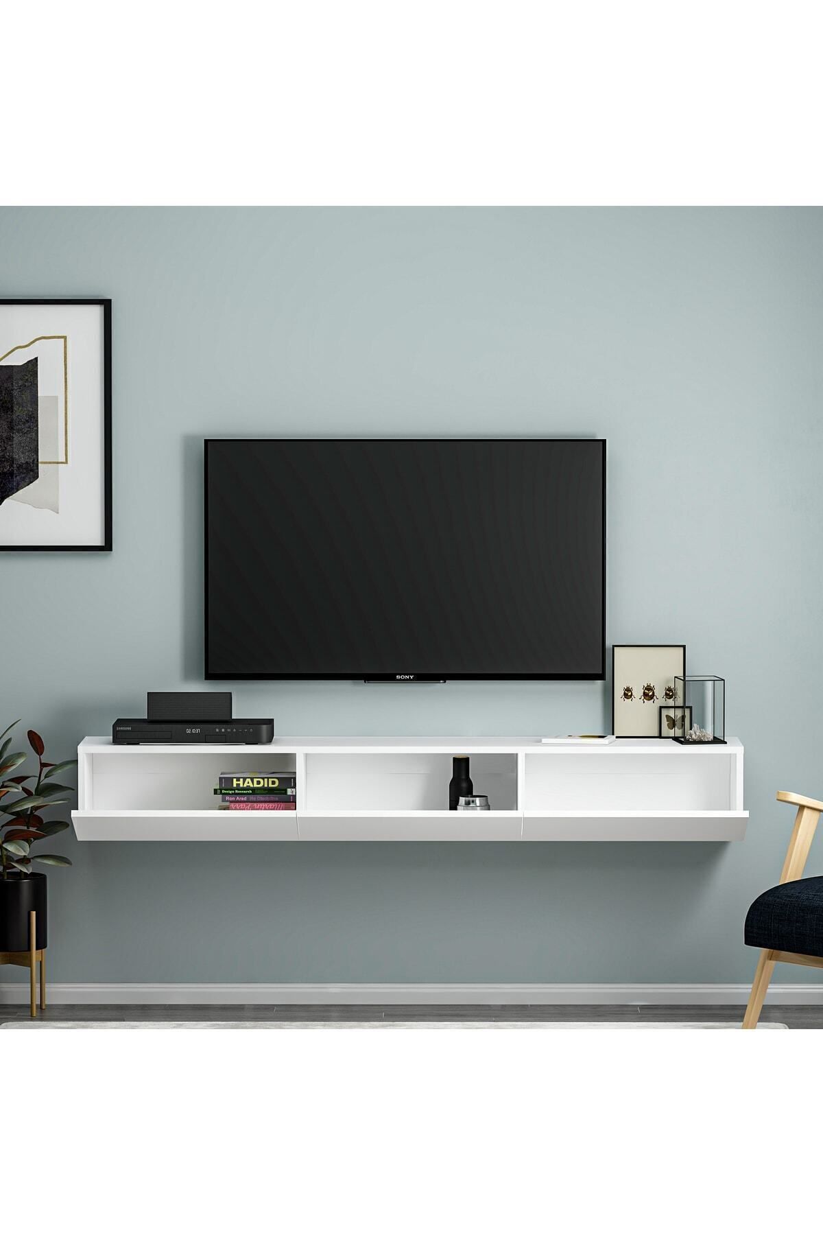 180 cm genişliğe sahip bu zarif ünite, 3 ayrı kapaklı bölmesi ile TV aksesuarlarınızı, kitaplarınızı ya da dijital ekipmanlarınızı düzenli biçimde saklamanızı sağlar. Askı aparatı sayesinde yere temas etmeden monte edilen bu ürün, modern ev dekorasyonlarının vazgeçilmezidir.
