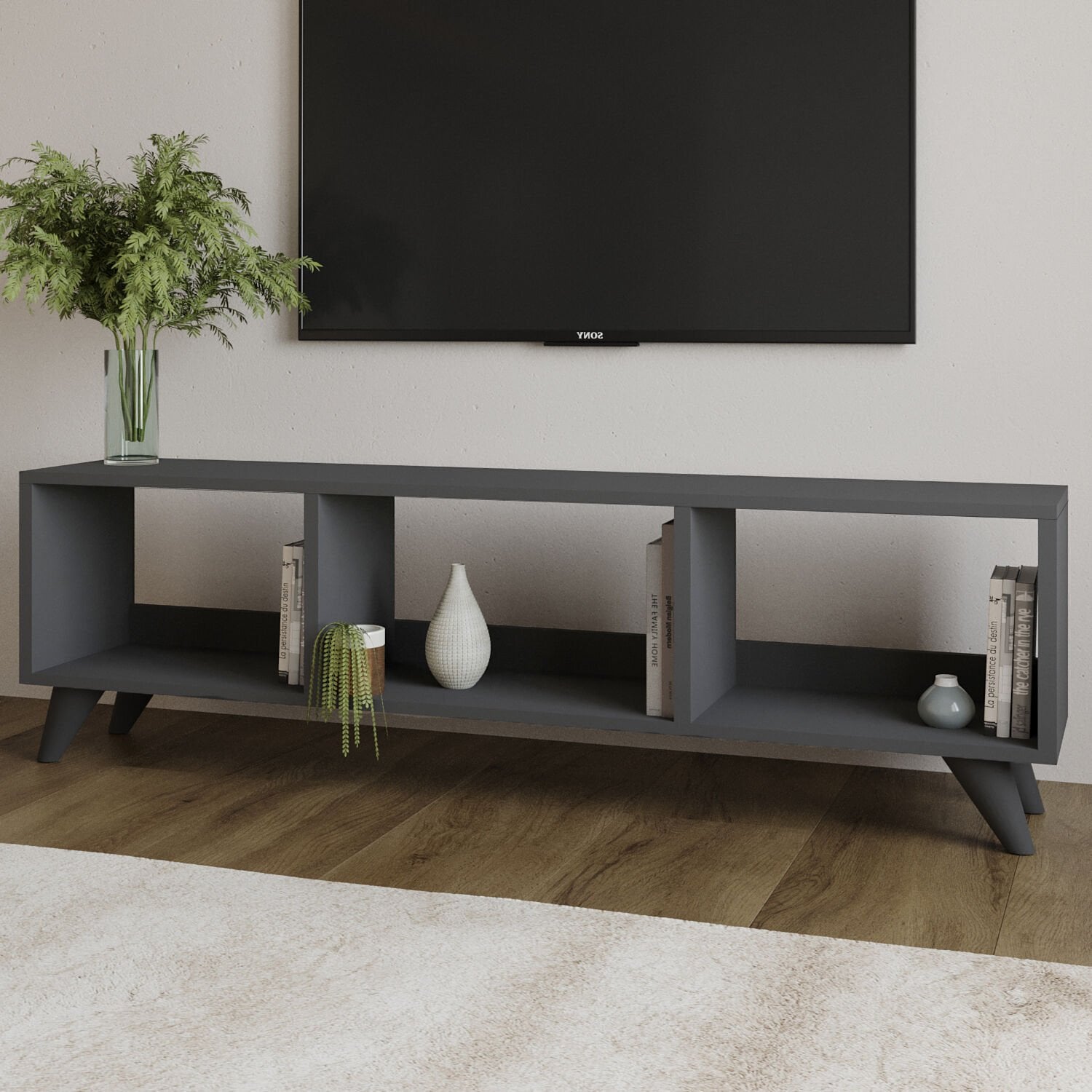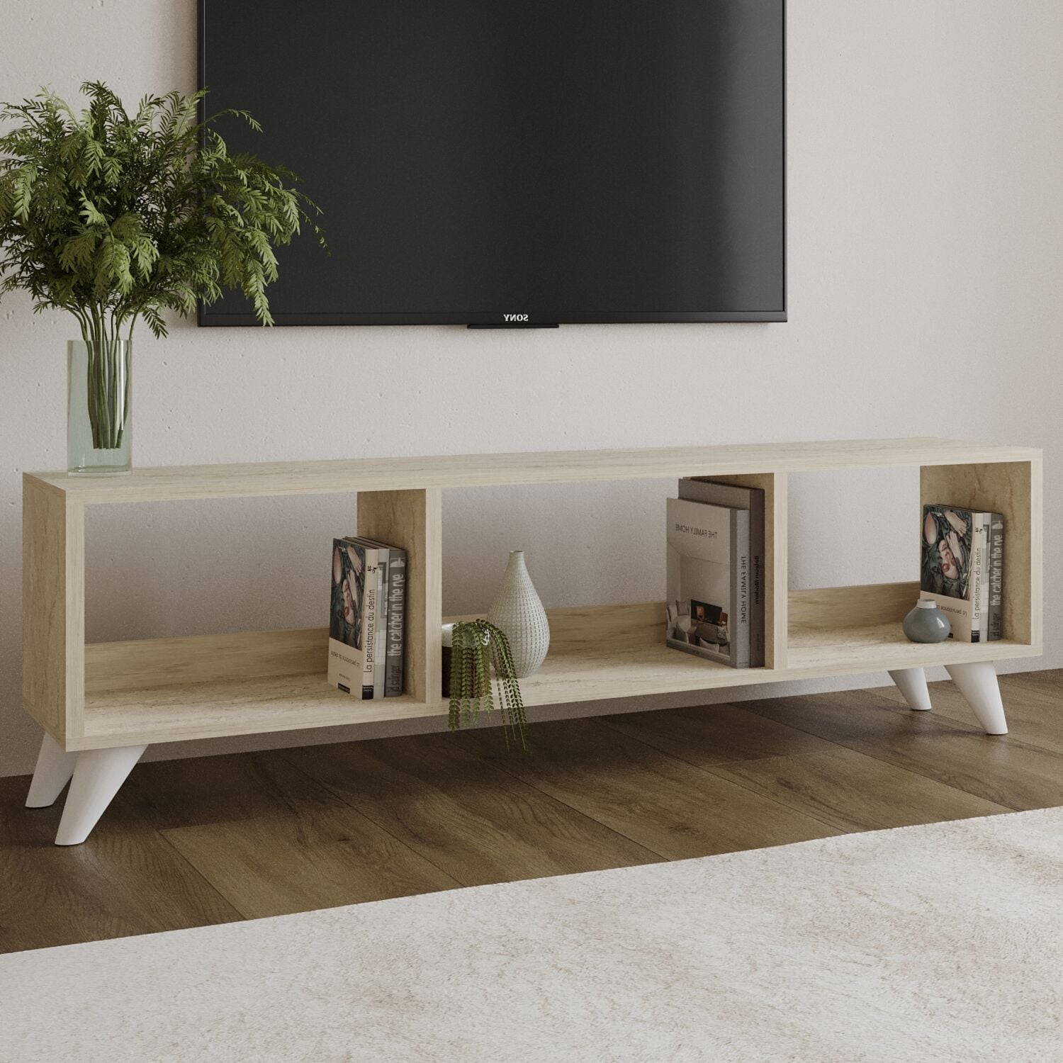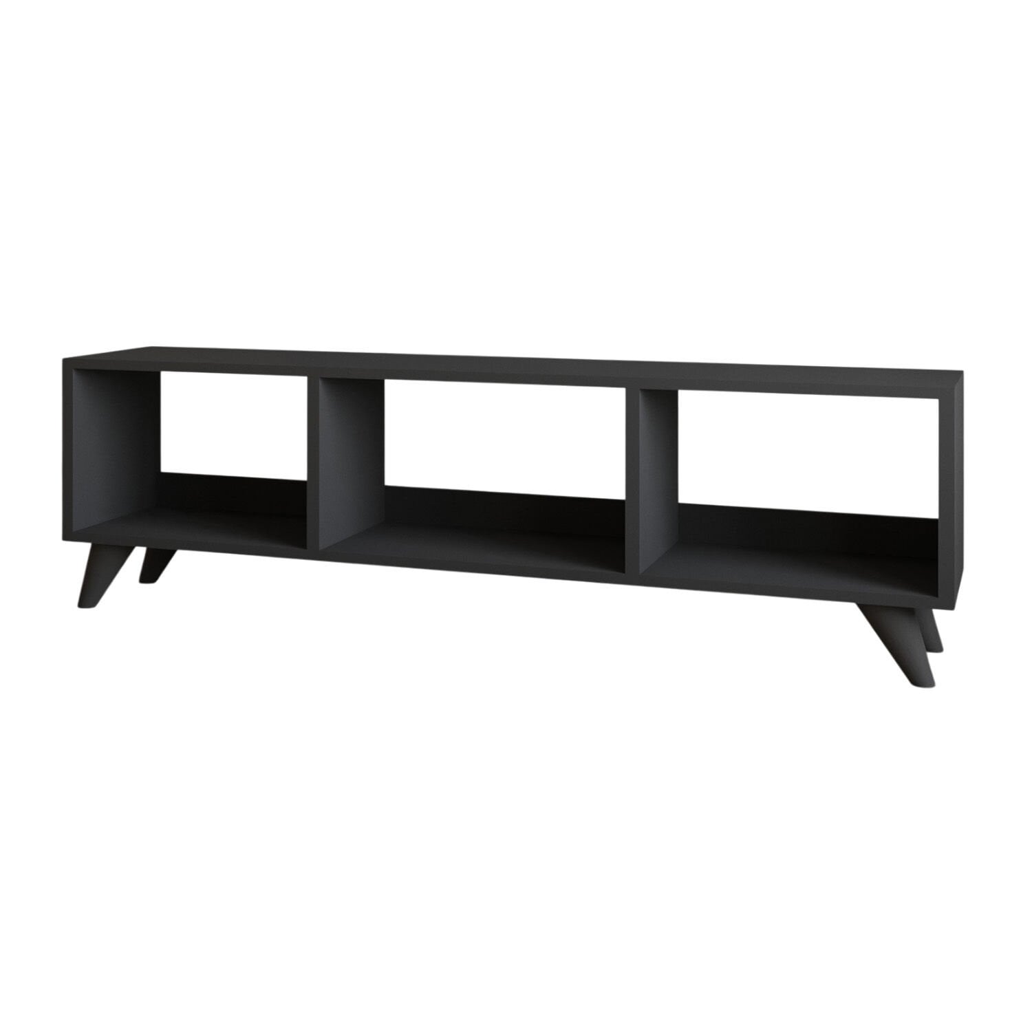 Üç bölmeli açık raf yapısı; kitap, dekoratif objeler ve medya ekipmanları için pratik kullanım sunar. Kompakt ölçüleriyle dar alanlarda bile maksimum verim sağlar.